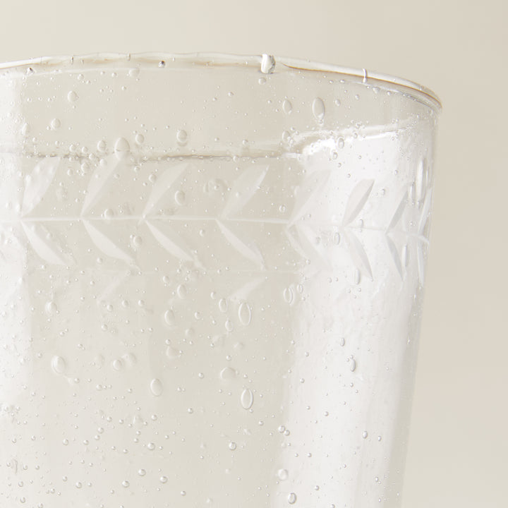 Enjoy the timeless beauty of this Tuscan handmade Etched Glass. Each piece is meticulously crafted and boasts a unique pattern, adding a touch of sophistication to any space. Elevate your table setting with the exquisite detail and elegance of our Etched Glassware collection.