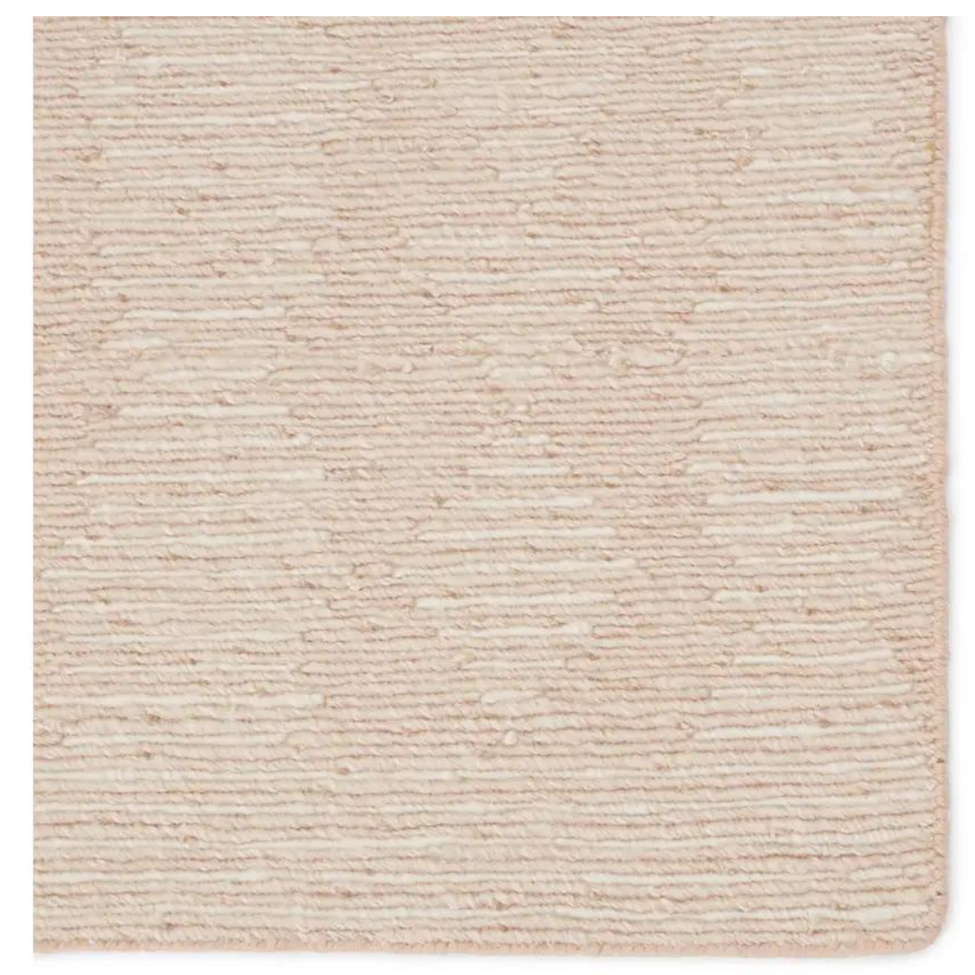 A beautiful blend of modern design and traditional inspiration. The hand-knotted Eve Rug blends wool and viscose fibers in a Soumak weave, inspired by traditional African textiles. Its low-profile design and soft pink and cream colors create a beautiful textural effect, showcasing a tribal motif. It's a perfect way to add a sophisticated, natural touch to any space.