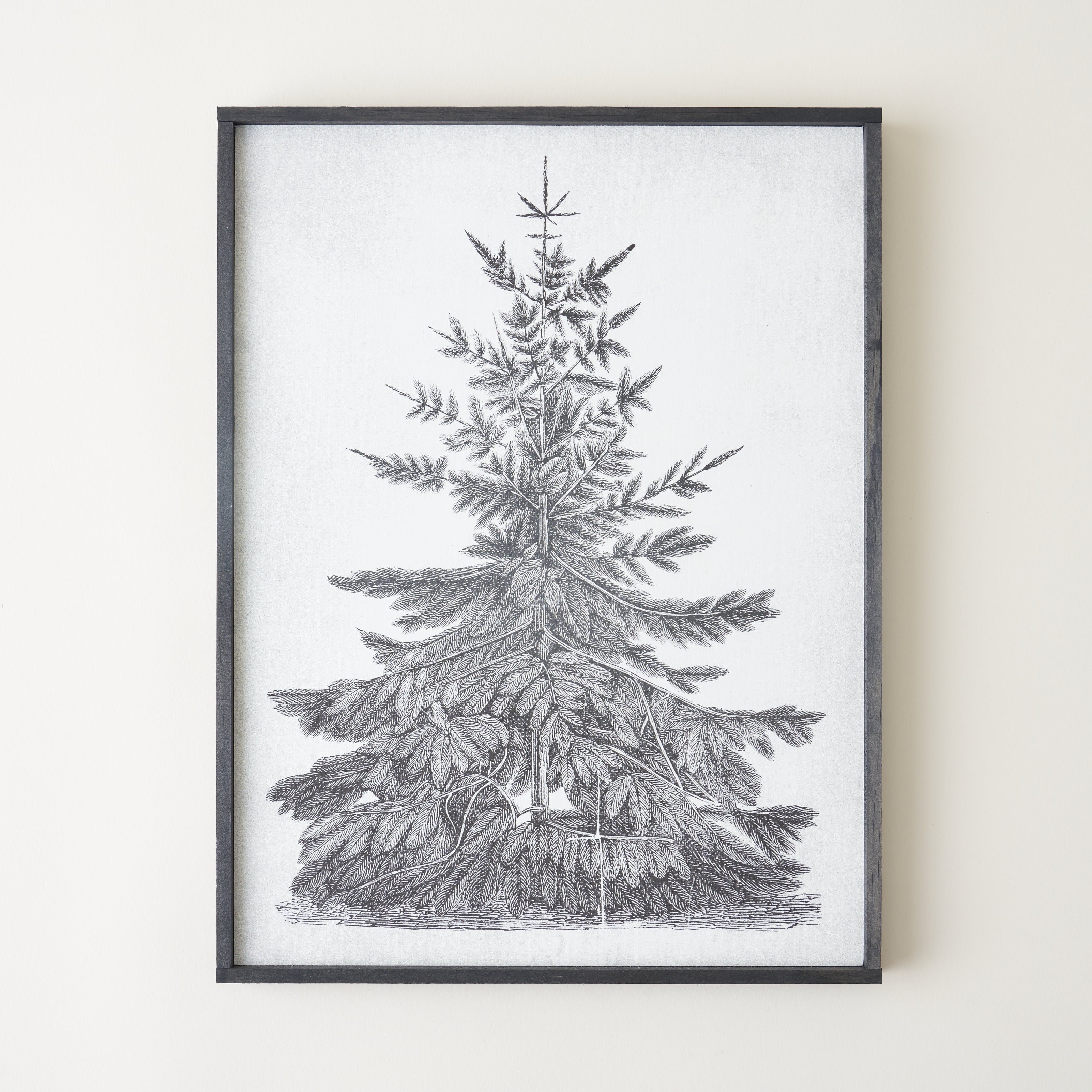 This Evergreen Tree Vintage Print is a timeless addition to your home décor. The vintage-style evergreen print is handmade and framed in a distressed wood frame. Create a cozy atmosphere in any room with this heirloom-inspired piece and layer multiple pieces of artwork for a collected look.