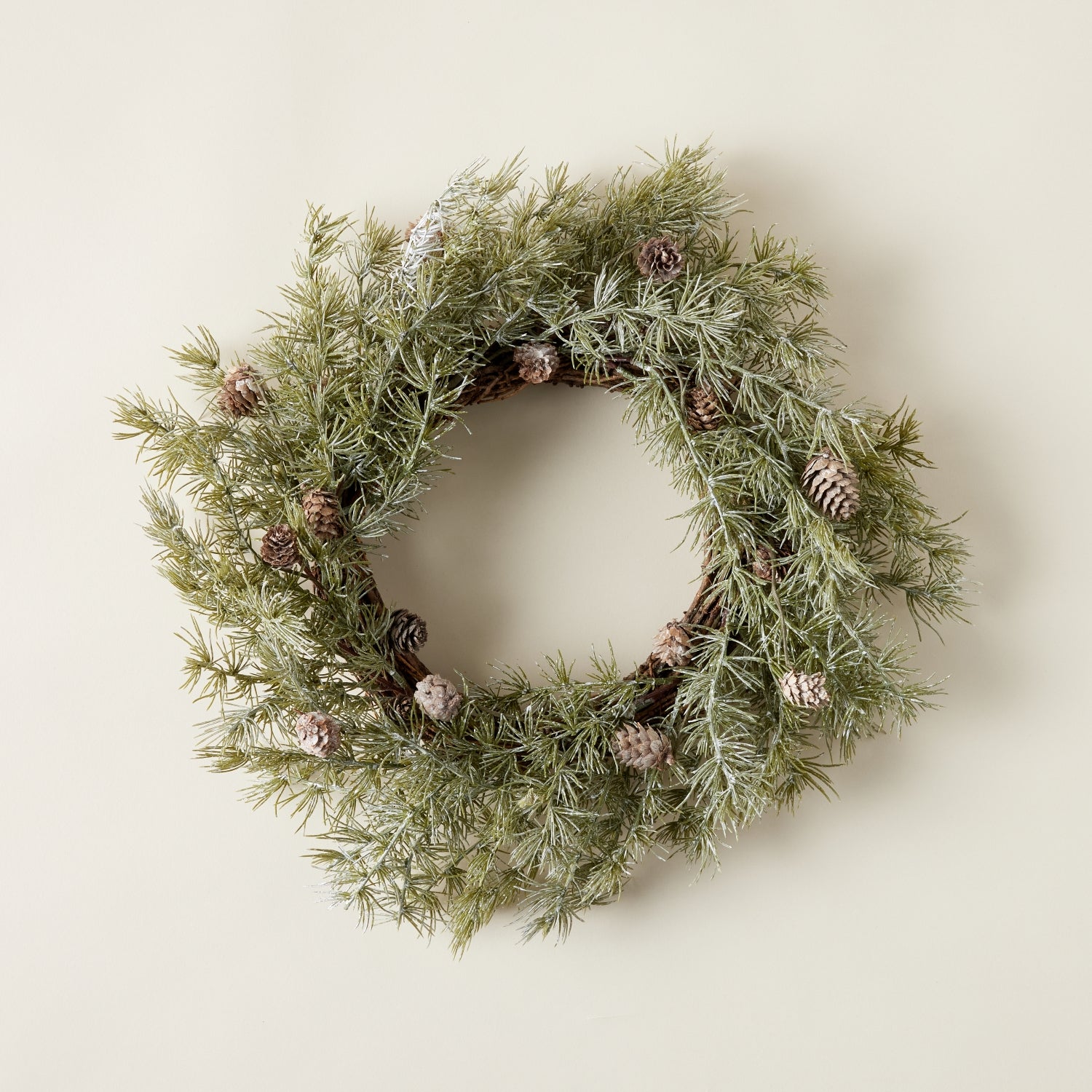 Add a touch of classic beauty to your home with this Faux Atlas Cedar Wreath. Crafted with realistic greenery and accented with natural pinecones, this timeless wreath is perfect for any entryway to welcome guests.