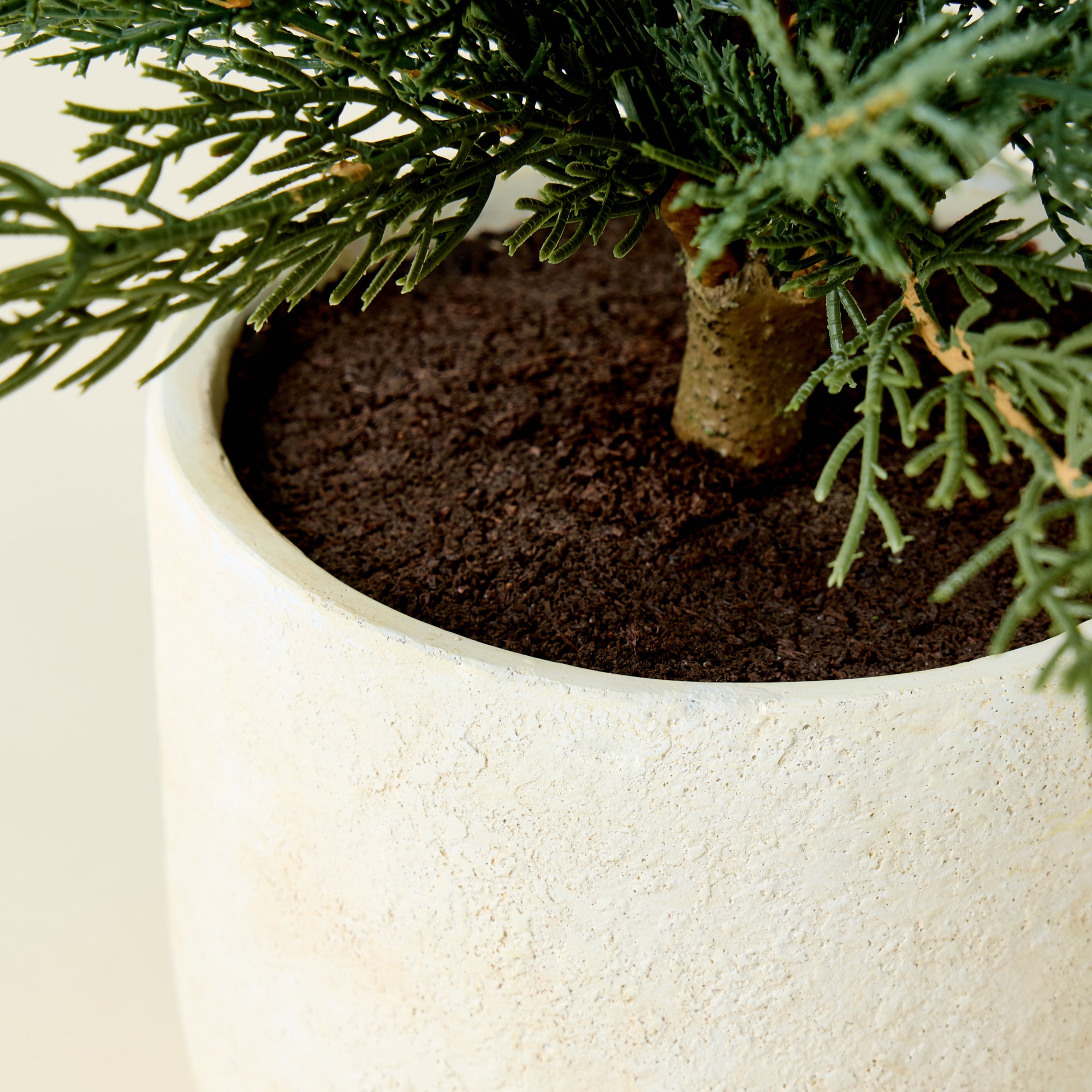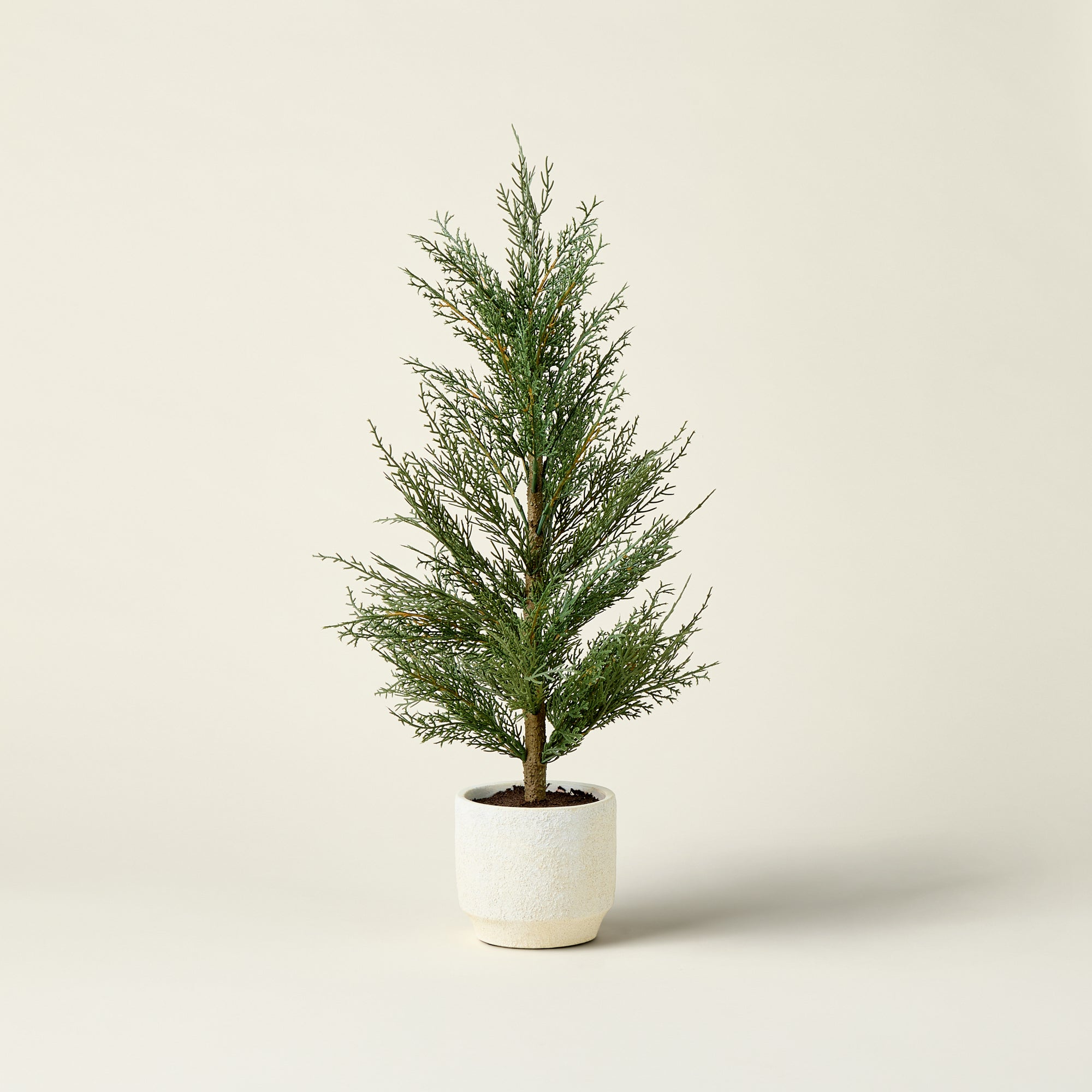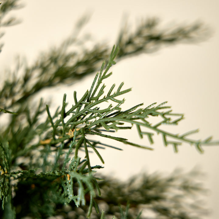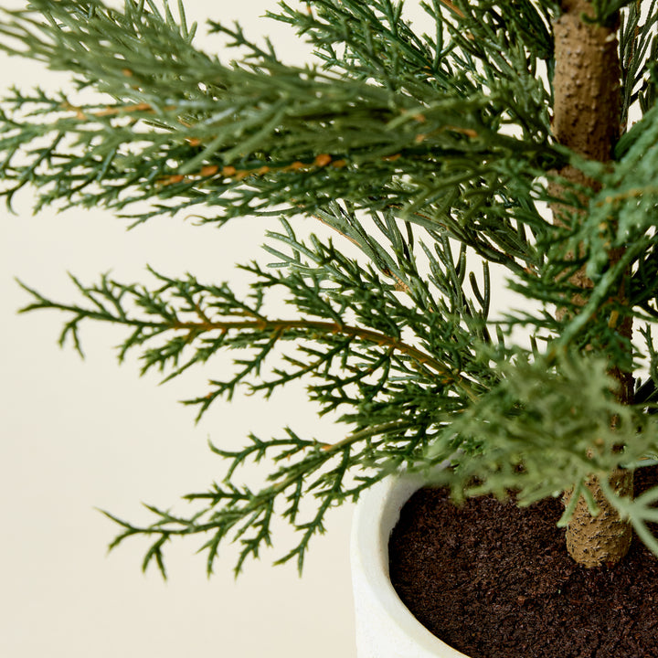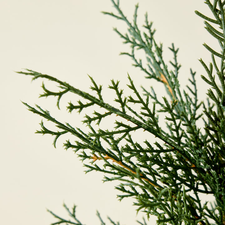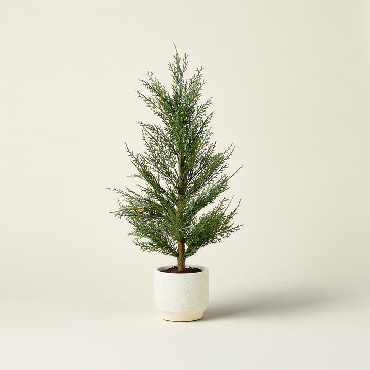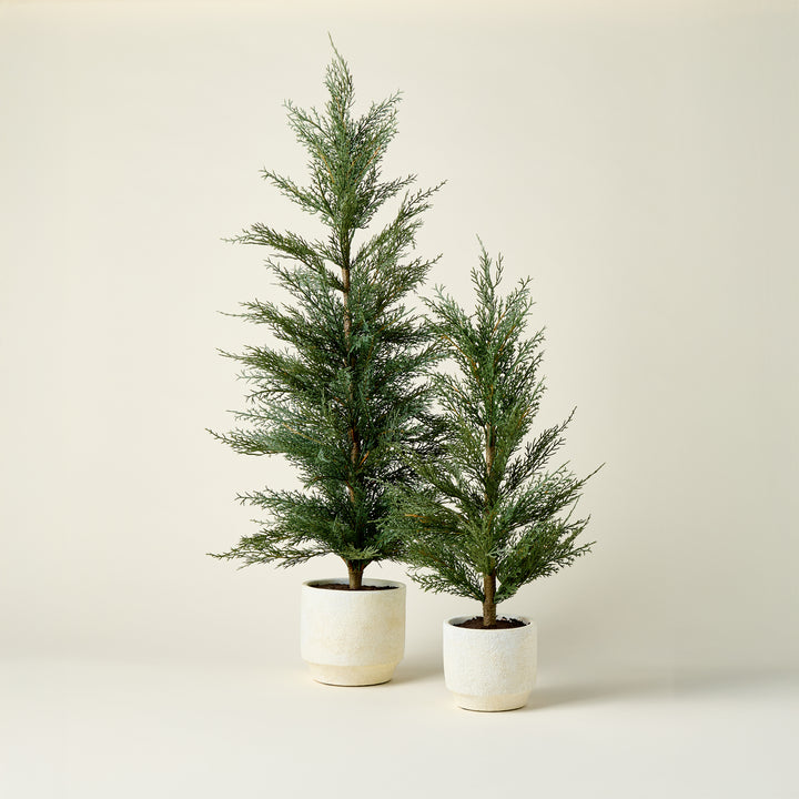 Bring a touch of natural elegance and quiet charm into your home with these Faux Evergreen Cedar Trees. Housed in a creamy pot with a clean, classic aesthetic, each tree provides a refreshing and vibrant green accent to any space.