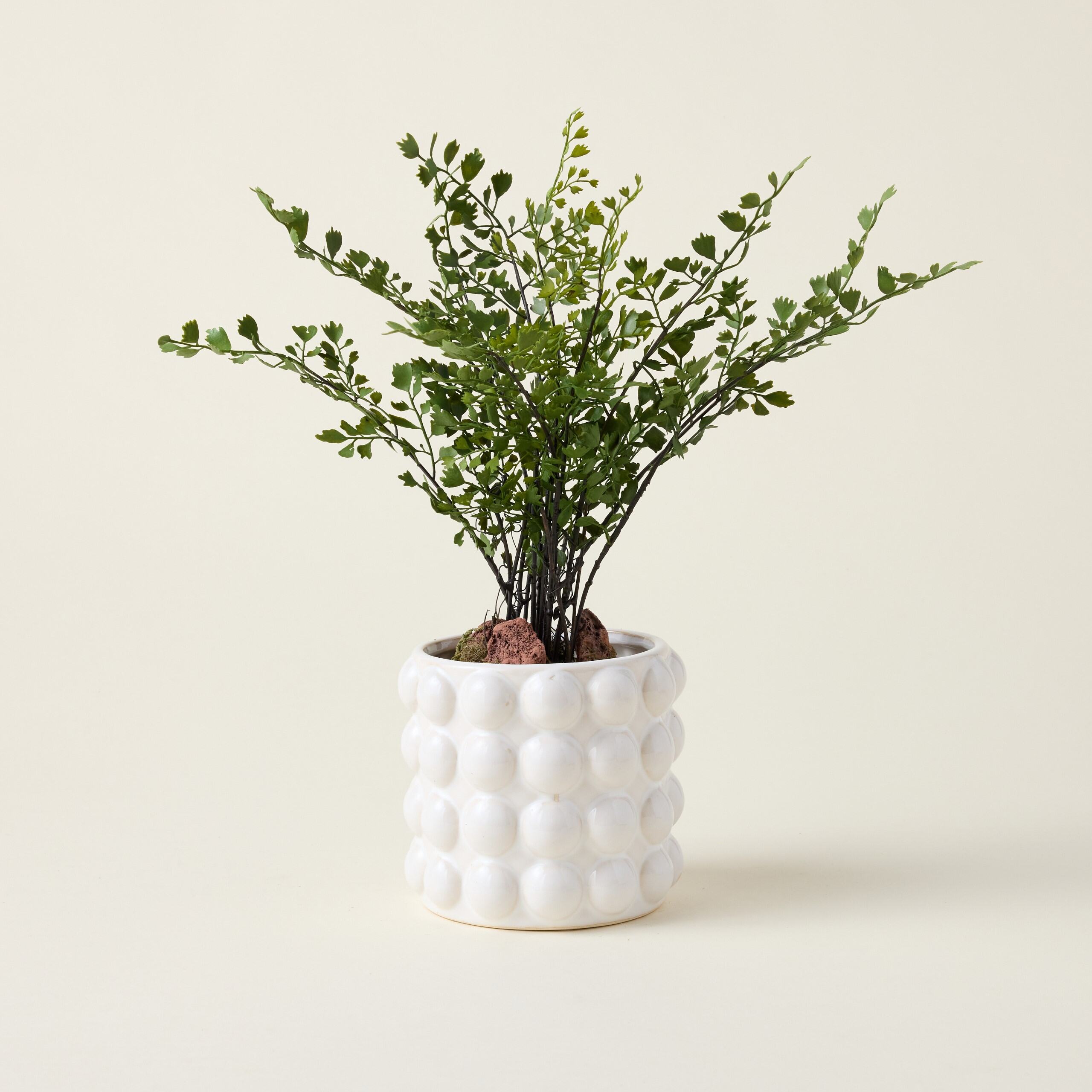 Experience the beauty of nature with this thoughtfully made Faux Maidenhair Drop-In. Expertly crafted to replicate the soft texture and delicate look of a real maidenhair fern, this curated botanical brings a sense of organic beauty to any space. The carefully designed root ball ensures a seamless fit into any vessel, making this a truly effortless way to add a touch of lush greenery to your home without the upkeep.