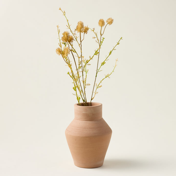 Bring a natural, foraged charm to your decor with this beautiful faux meadow pom pom stem. Its soft honeyed tones and rich texture strike a perfect balance between foliage and floral elements, making it an ideal choice for creating an effortlessly curated arrangement. Whether displayed alone in a simple vessel or layered in with other botanicals, this thoughtfully made piece adds relaxed elegance and a touch of organic warmth to any environment.