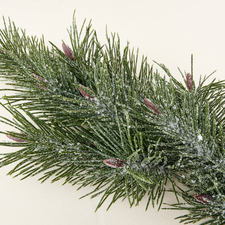 A beautiful way to bring the wintery magic of the outdoors inside. This Faux White Pine Spray, with its beautiful frost-finish, is a perfect way to transform ordinary branches into a festive decoration. It's an effortless way to add a beautiful, wintery touch to any display, from a centerpiece to a mantel arrangement.
