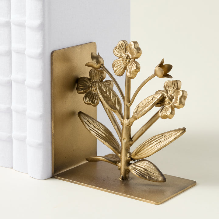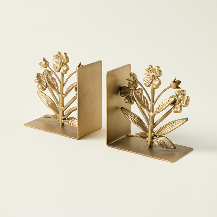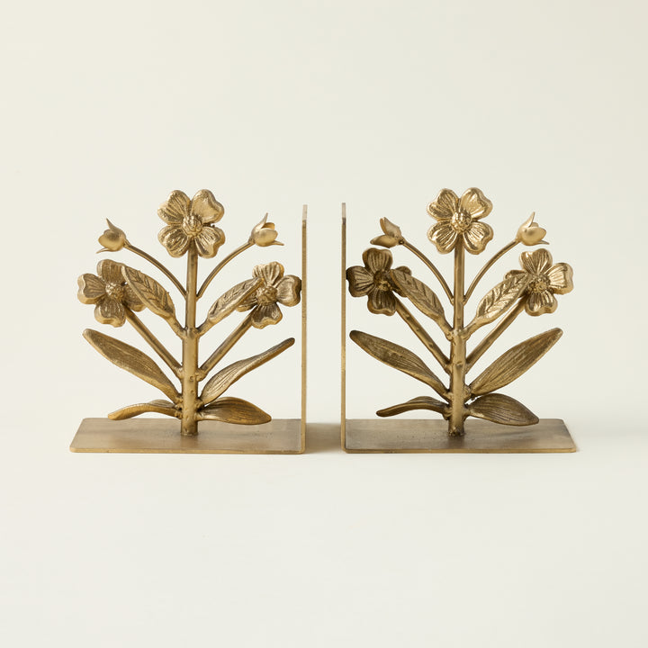 A thoughtfully made piece that brings both function and charm, this set of cast iron flower bookends is a perfect addition to any space. Each bookend is a sculptural work of art, with a beautiful gold finish and a whimsical, floral shape. Crafted to securely hold your books while adding a curated feel to your decor, these bookends are ideal for a living room, studio, or children's bedroom.