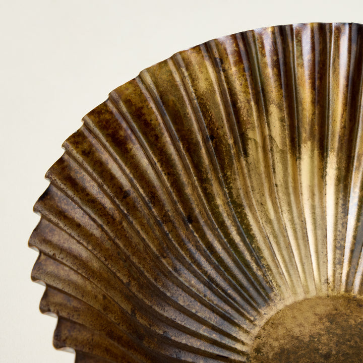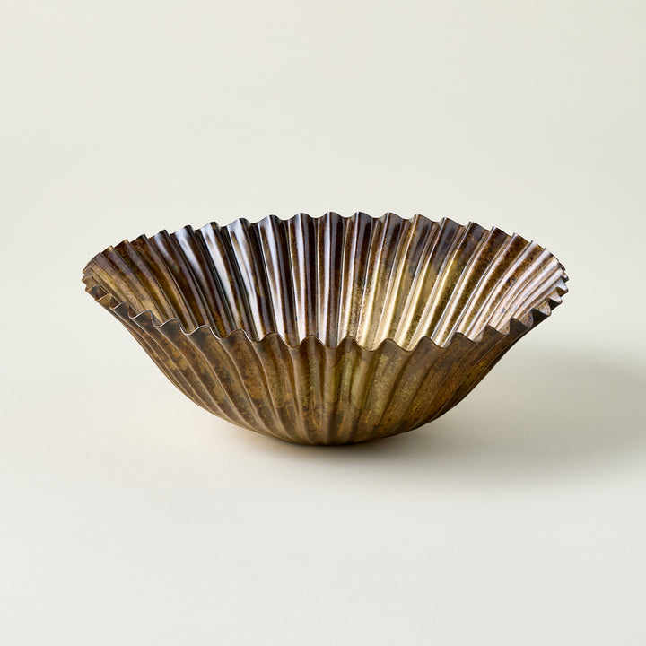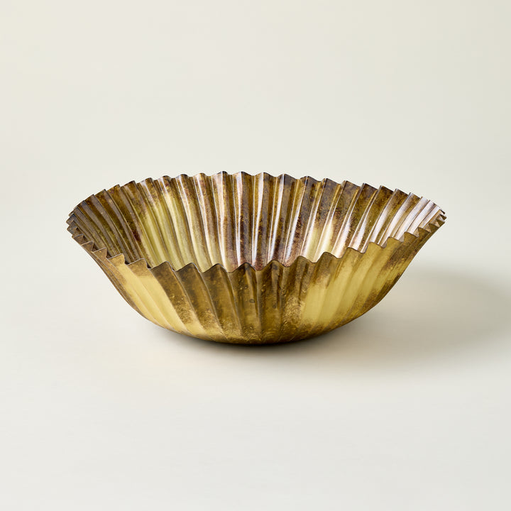 Crafted with an antique brass finish, this fluted metal bowl adds timeless elegance to any setting. Its sculpted design enhances visual interest while providing a sturdy vessel for decorative displays or functional use. Ideal for elevating your décor with a sophisticated, vintage-inspired touch.