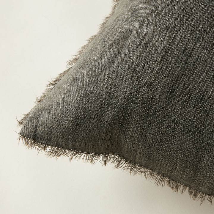Featuring a delicate frayed edge, the Forest Linen Pillow is made of soft, luxurious Belgian linen and is stone-washed for a cozy feel. Perfect for styling on its own or for layering with other textiles, each pillow is complete with a premium feather down filler for ultimate comfort.