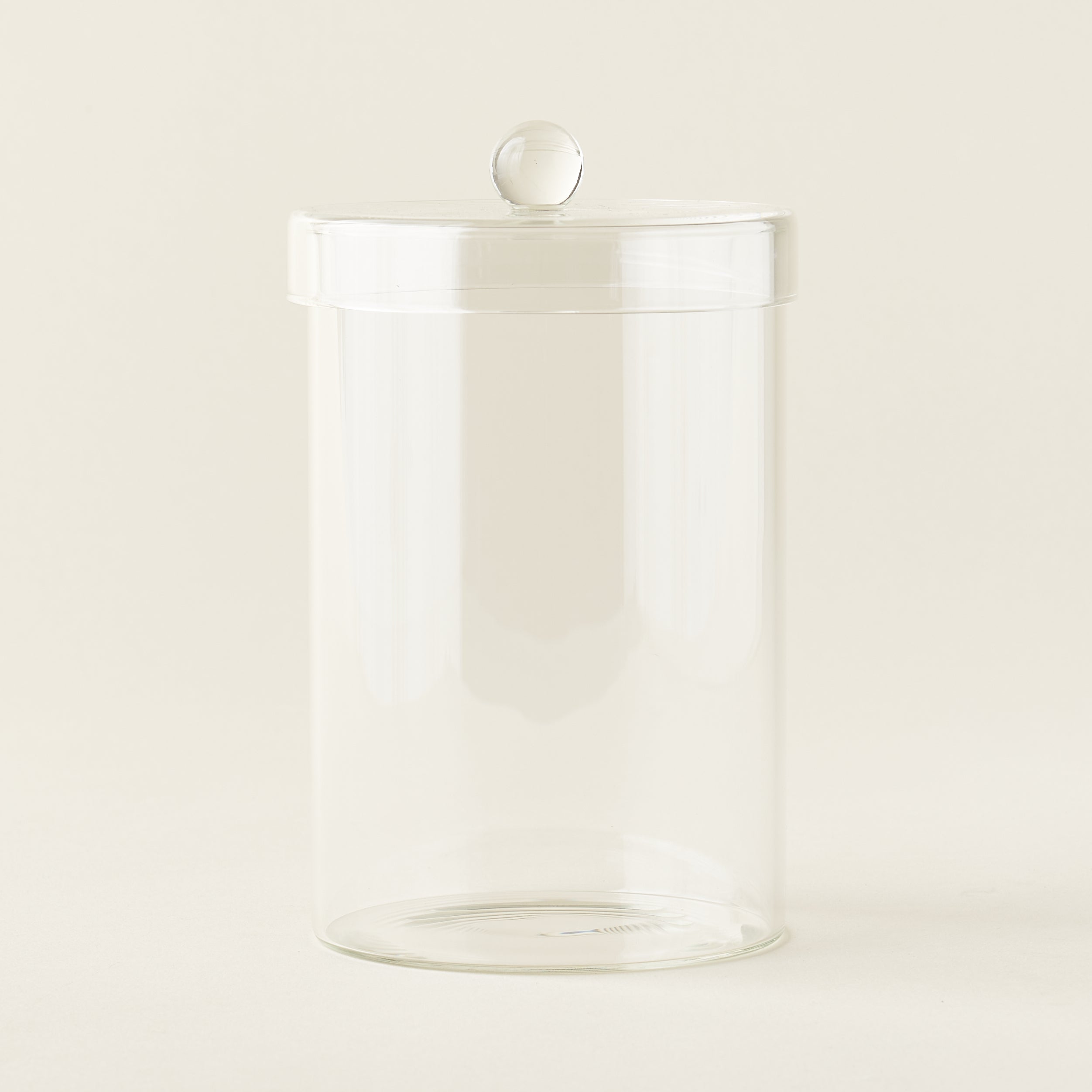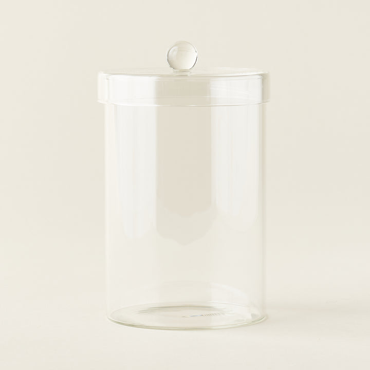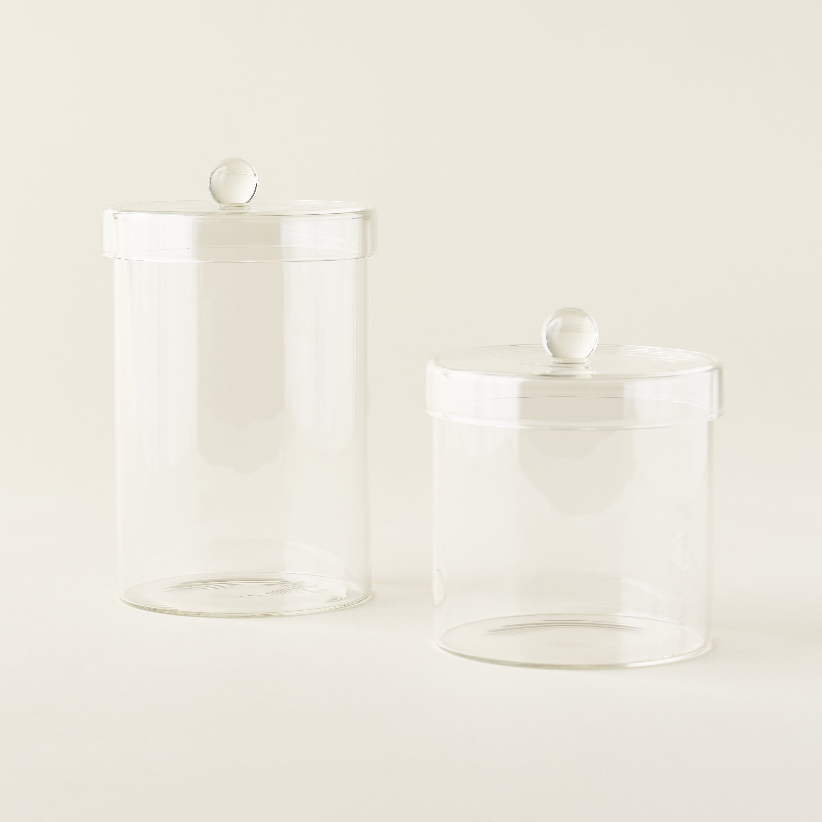Stylish and practical, this Glass Utility Jar is perfect for storing dry goods in the kitchen, or in a bathroom for cotton balls and bath salts. With included stoppers, these jars are versatile and easy to use. Plus, their sleek design will elevate any space.