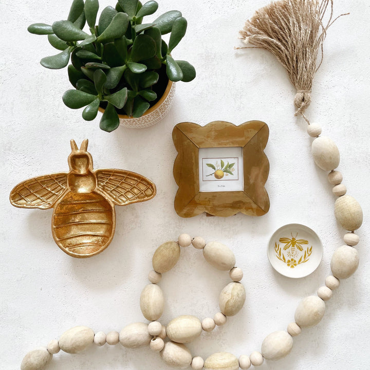 The Gold Bee Dish is a true crowd favorite! This versatile, beautiful item is a perfect decorative piece for your home. It can be used as a catchall for keys or jewelry in your entryway, a stunning accent on your vanity, or a unique accent on your bookshelf. Get your hands on this popular item while you can!