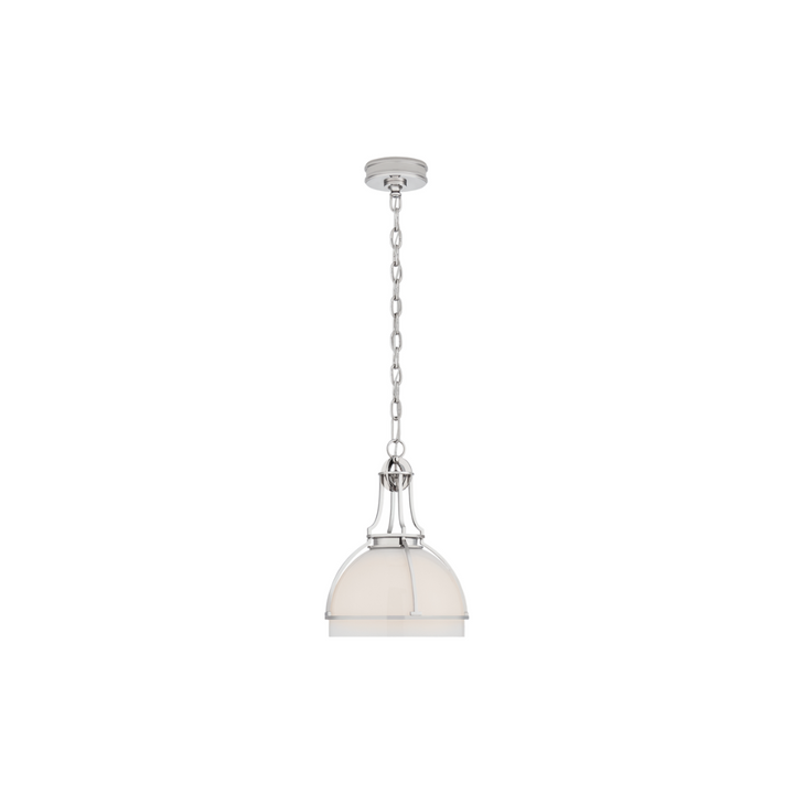 The Gracie Dome Pendant draws inspiration from Victorian gas-lit globe pendants, reimagining the classic industrial style with contemporary proportions and sophisticated design. Featuring armillary details and sturdy square tube frames in polished nickel, it pairs beautifully with white glass globes. This pendant offers a refined illumination solution that enhances any space with timeless elegance and modern appeal.