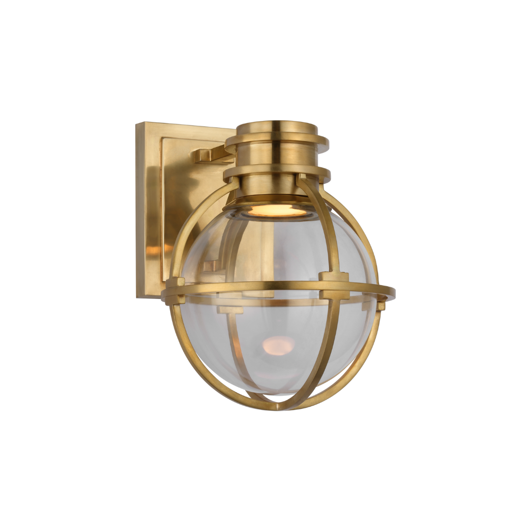 The Chapman & Myers Gracie Single Sconce is a modern take on the classic Victorian gas-lit globe pendant. With elegant armillary details and square tube frames in Antique-Burnished Brass, this sconce adds a refined touch to any room. Each sconce features clear glass for an illuminating and sophisticated addition to your space.