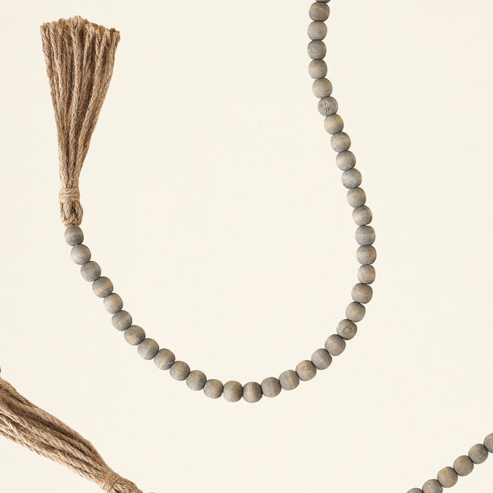 Grey Jute & Wood Bead Garland with Tassels