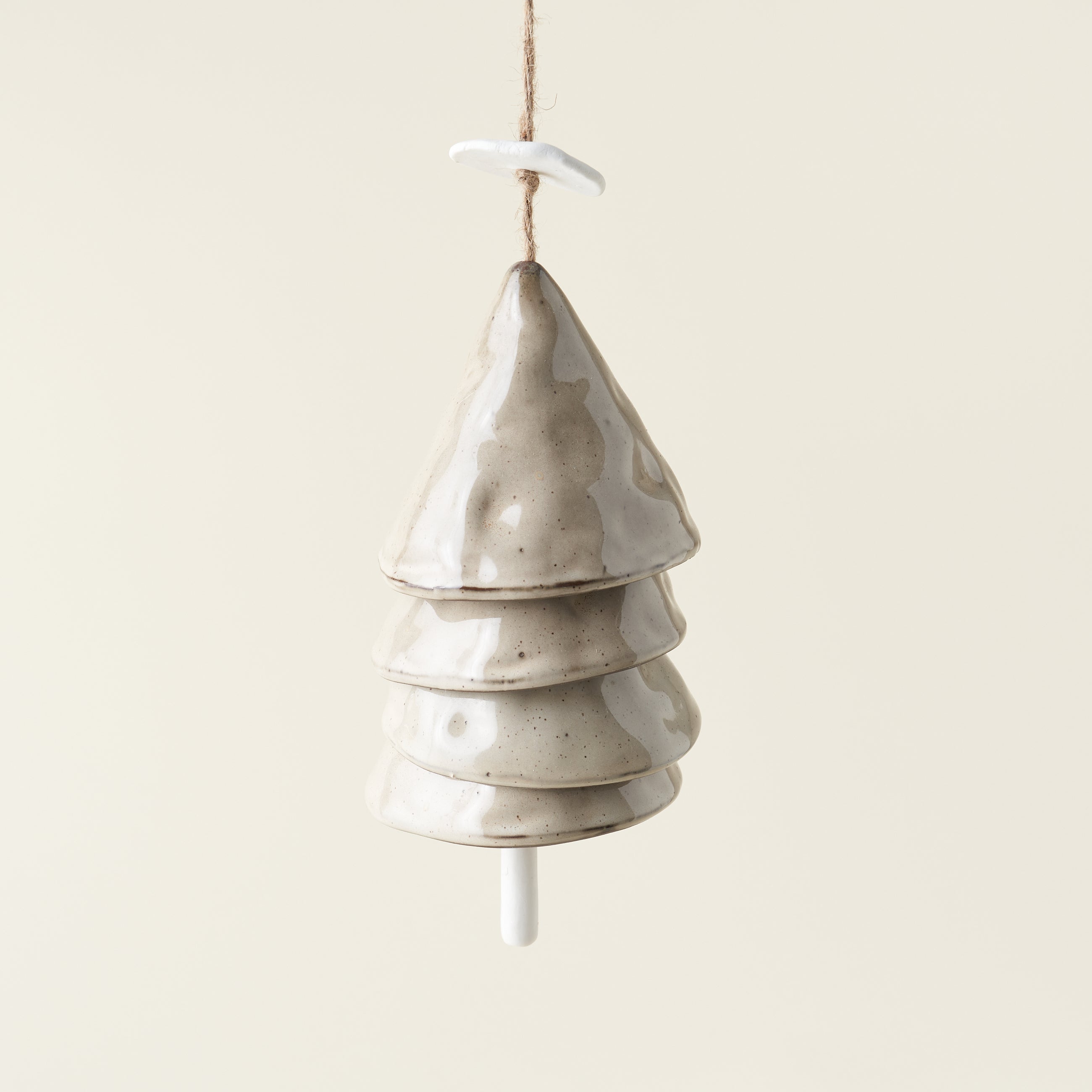 A beautiful way to add an organic and natural aesthetic to your home, these Hanging Stoneware Bells are a unique decorative piece. Crafted from beige and white stoneware, they feature a jute string for a rustic, natural feel. Hang them to layer in beautiful texture and visual interest, making a subtle yet captivating statement in any space.