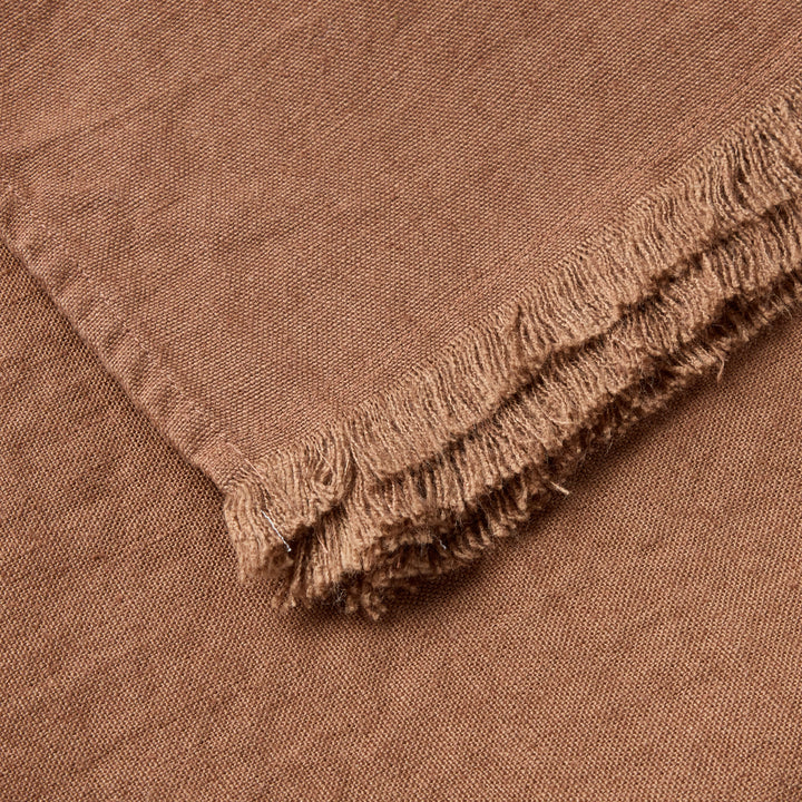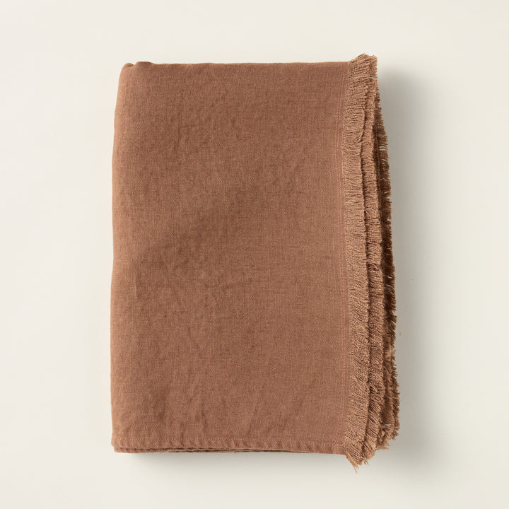 This heavyweight linen throw blanket in a deep chocolate brown adds both warmth and depth to any living space. Crafted from durable, breathable linen, it ensures comfort throughout the year while adding a rich, earthy hue to any environment. Ideal for layering on beds or draping over sofas, this throw combines functionality with timeless style.