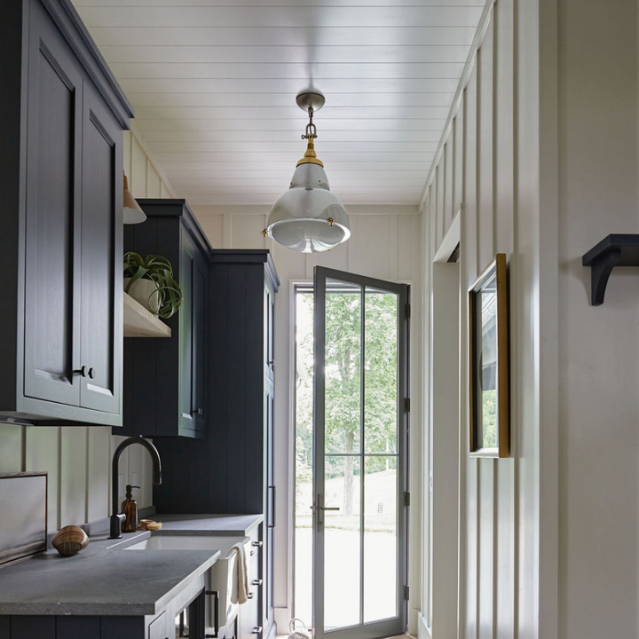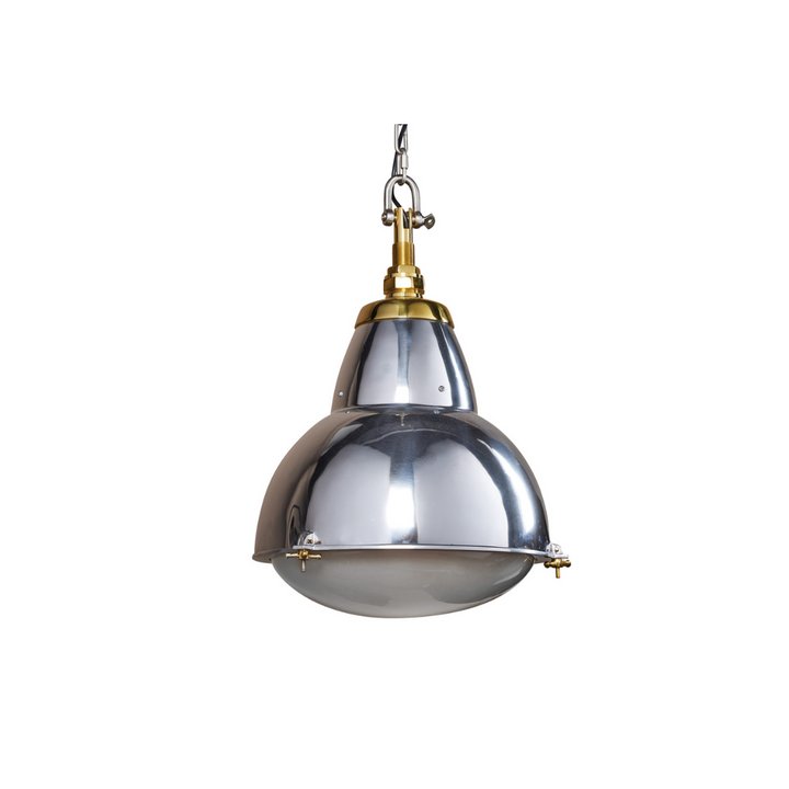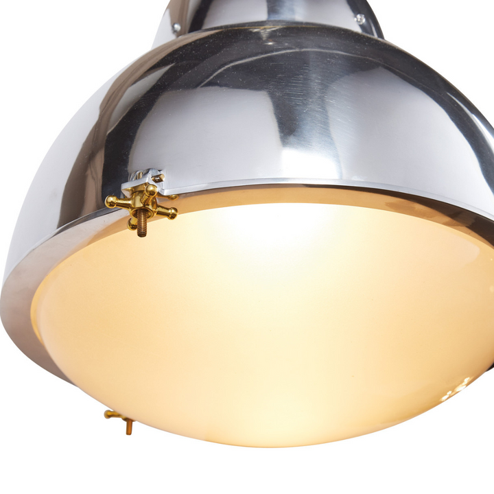 Immerse yourself in the timeless charm of the 1930s with this Industrial Pendant. Crafted from brass and aluminum, this chandelier adds a touch of classic industrial style to any space. With its warehouse bulb, brass accents and vintage design, it's perfect as a statement piece or as part of a collection.