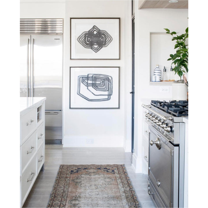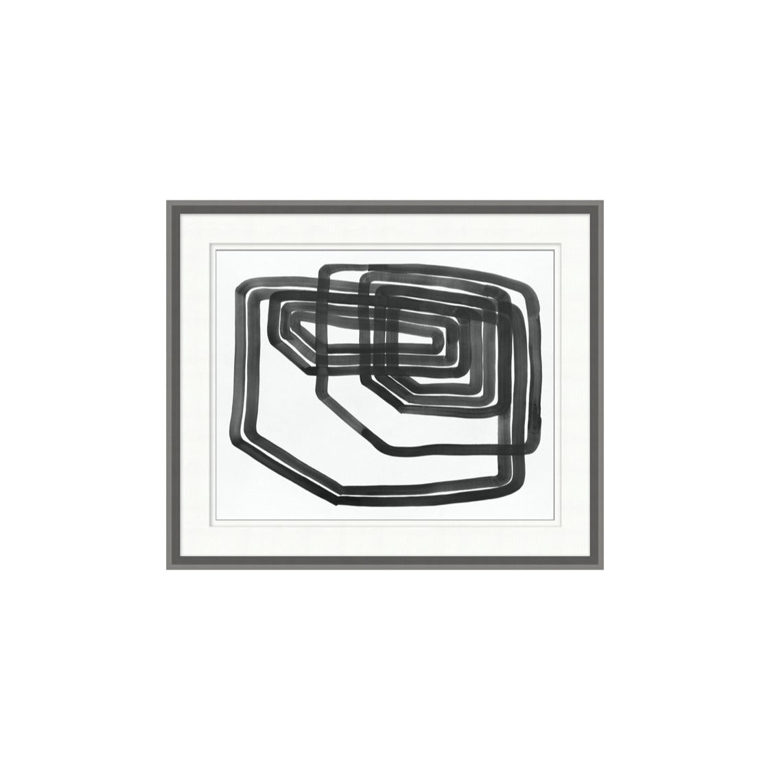 Abstract geometrics shapes in grey. Matted under glass with grey frame.