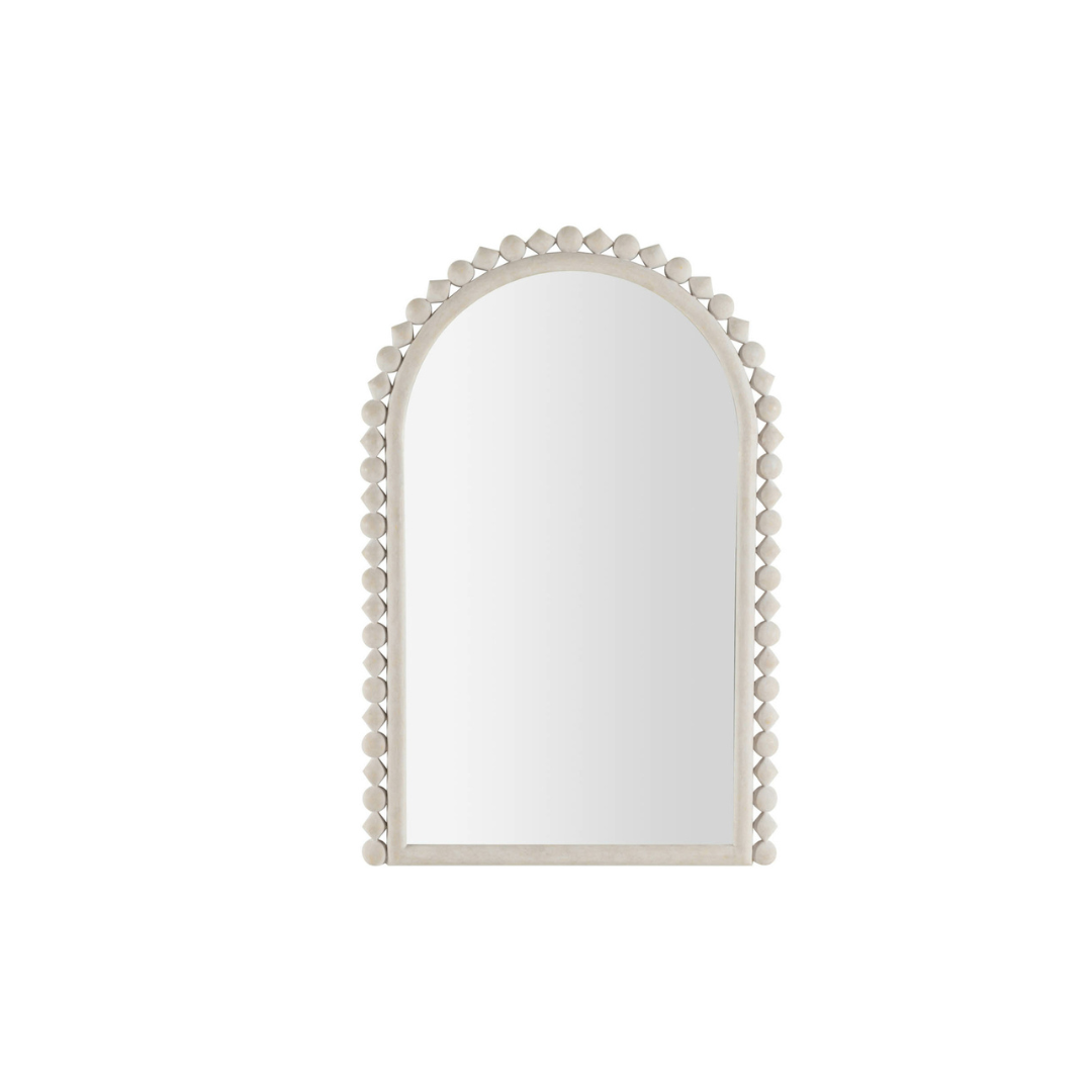 The Isabella Mirror is an exquisite piece with an arched design and a distressed white frame. Its multi-dimensional "beaded" border adds a touch of texture, making it truly unique. Whether styled in a powder room, entryway or bedroom, this mirror makes a stunning statement in any space.