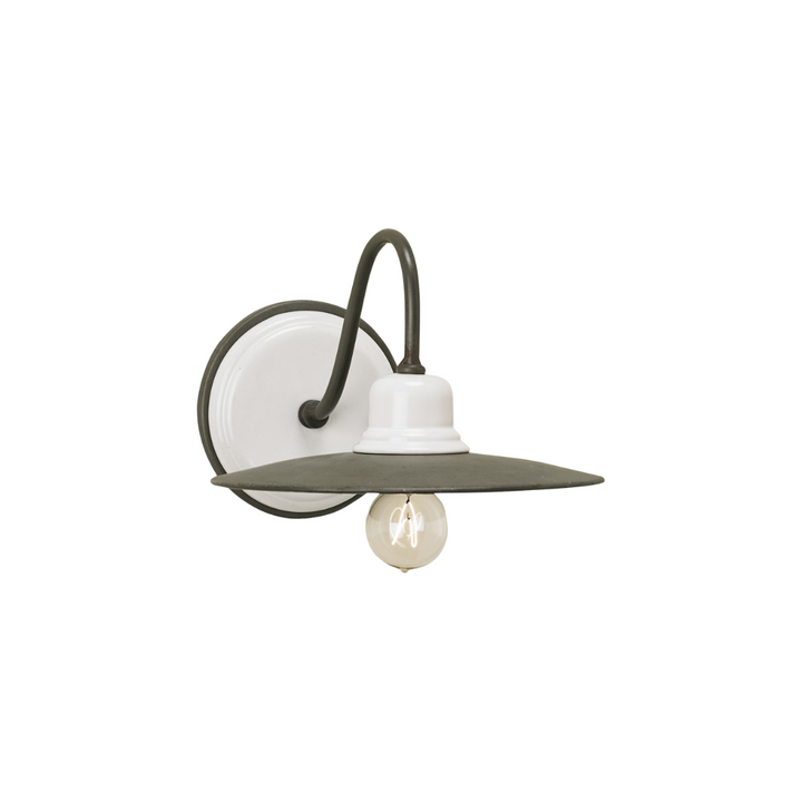 The Jayden Wall Sconce features a timeless design inspired by early American farmhouse style. Made of white ceramic and wrought iron in a gray finish, this sconce brings visual interest to any space, such as a bathroom.