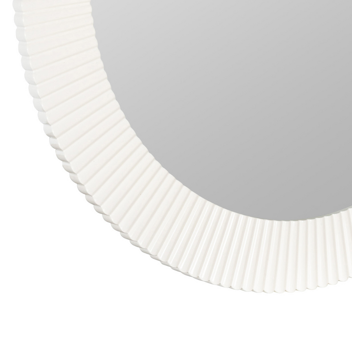 The Josie Wall Mirror features a fluted white resin frame that adds subtle texture and elegance to any space. Its clean, sculptural design complements a variety of interiors, providing both functional reflection and a refined decorative accent.Β