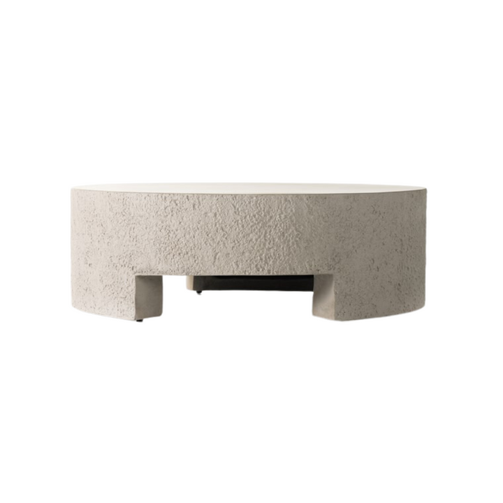 This Karen Outdoor Coffee Table is perfect for any outdoor style. It features a heavy texture of pumice concrete with a smooth top, and a statement cylindrical shape, lifted by cutout legs for an airy, contemporary look. Cover or store indoors when not in use for long-lasting use.