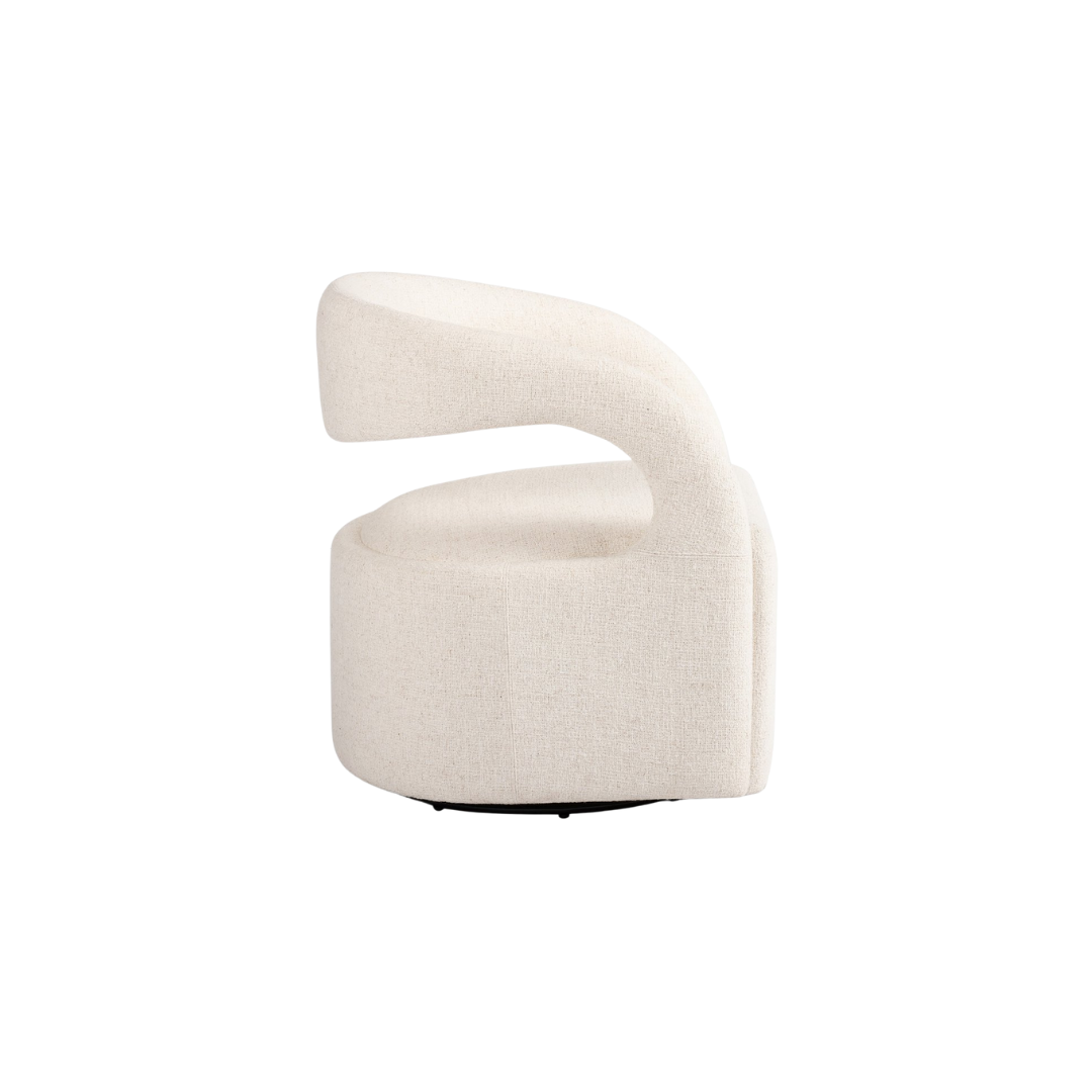 The Kennedy Swivel Chair offers a modern update to a stationary design. With its 360-swivel feature, this chair makes a stylish statement in any room. Made with high-performance fabric, it is both durable and easy to maintain, perfect for high traffic areas. Enjoy long-lasting comfort and style with this sculpted and curved chair.