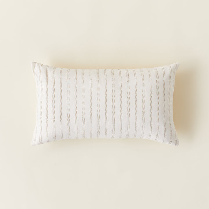 A collaboration born of shared passion, this lumbar pillow cover is the perfect accent for any living space. The broken stripe pattern, with its soft colors and beautifully textured surface, captures the unique character of its handwoven fabric, making it a truly timeless and beautiful addition to your decor.
