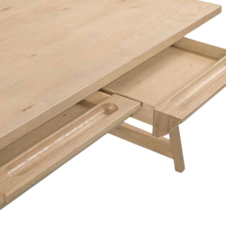 A timeless and refined addition to any workspace, the Lana Desk embodies the timeless elegance of the mid-19th Century Arts and Crafts movement. Its spacious rectangular top is supported by a practical apron rail drawer with a pencil scoop, providing convenient storage for your writing essentials. The desk's sturdy angled legs and central beams ensure both durability and stability, making it a functional and beautiful piece of furniture you'll love for years to come.
