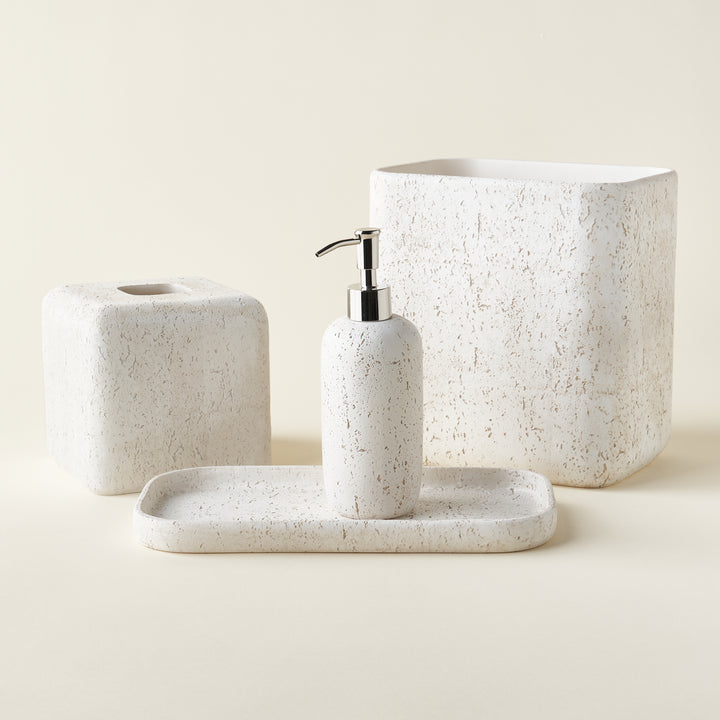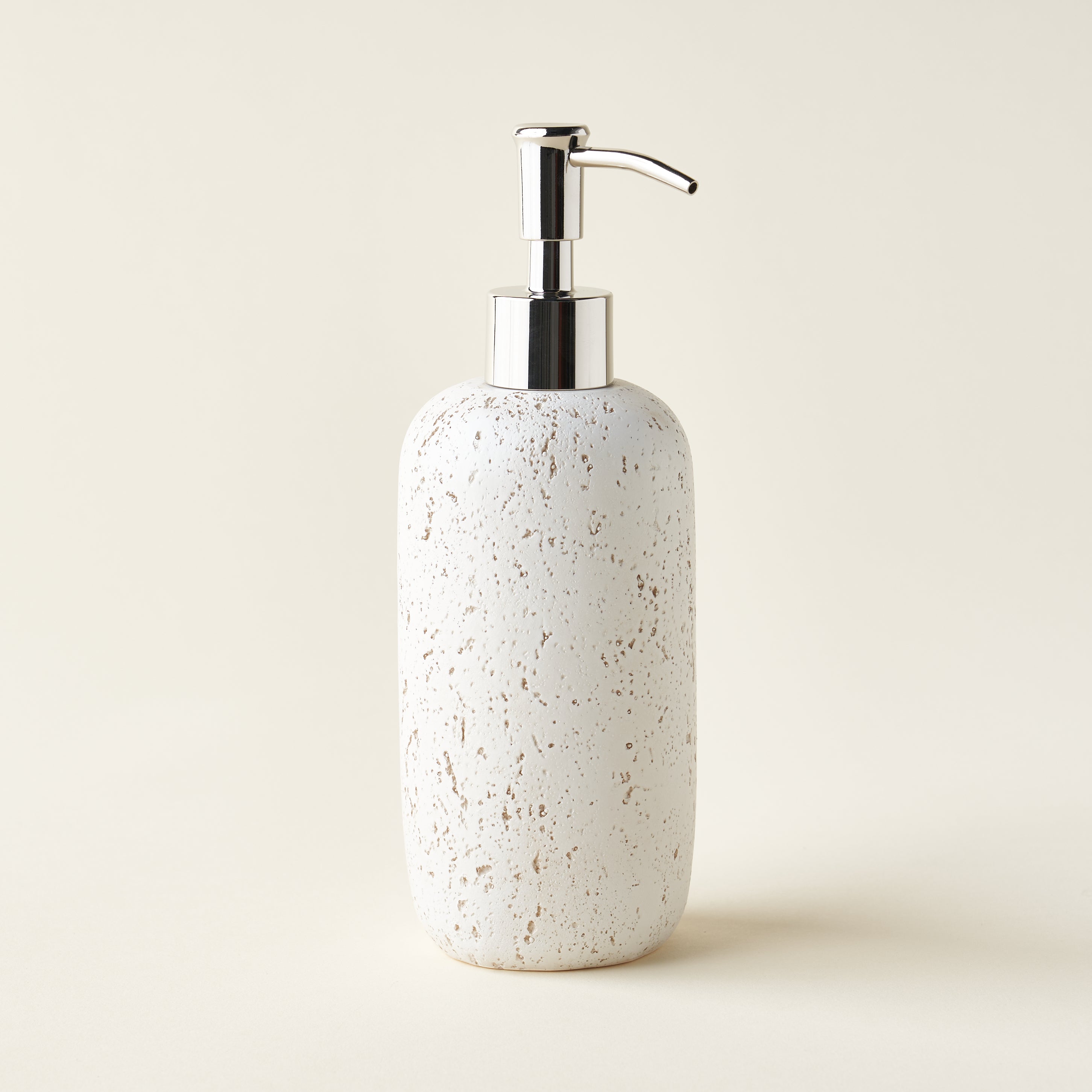 Elevate your bathroom to a serene oasis with this Langham Soap Dispenser. Made from durable resin with a luxurious limestone look, these accessories will give your bath a spa-like feel.