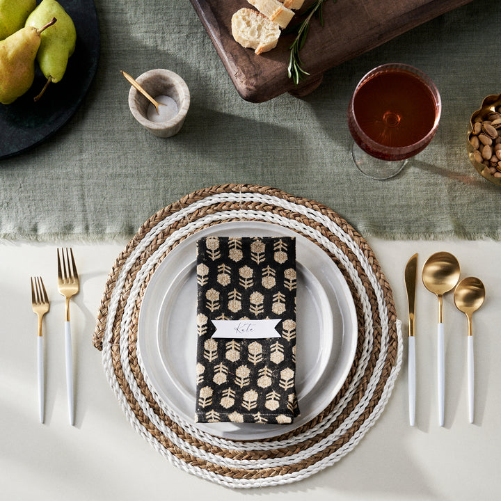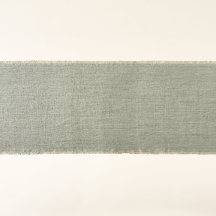 A timeless addition to any table, the Laurel Linen Table Runner effortlessly enhances tablescapes of every style, from rustic to refined. Crafted from a natural linen, this runner in a beautiful sage green hue features a delicate eyelash fringe on all sides, adding a sophisticated, bohemian texture. This simple, elegant piece provides a beautiful foundation for an artisanal display, making it a staple for both everyday dining and special occasions.