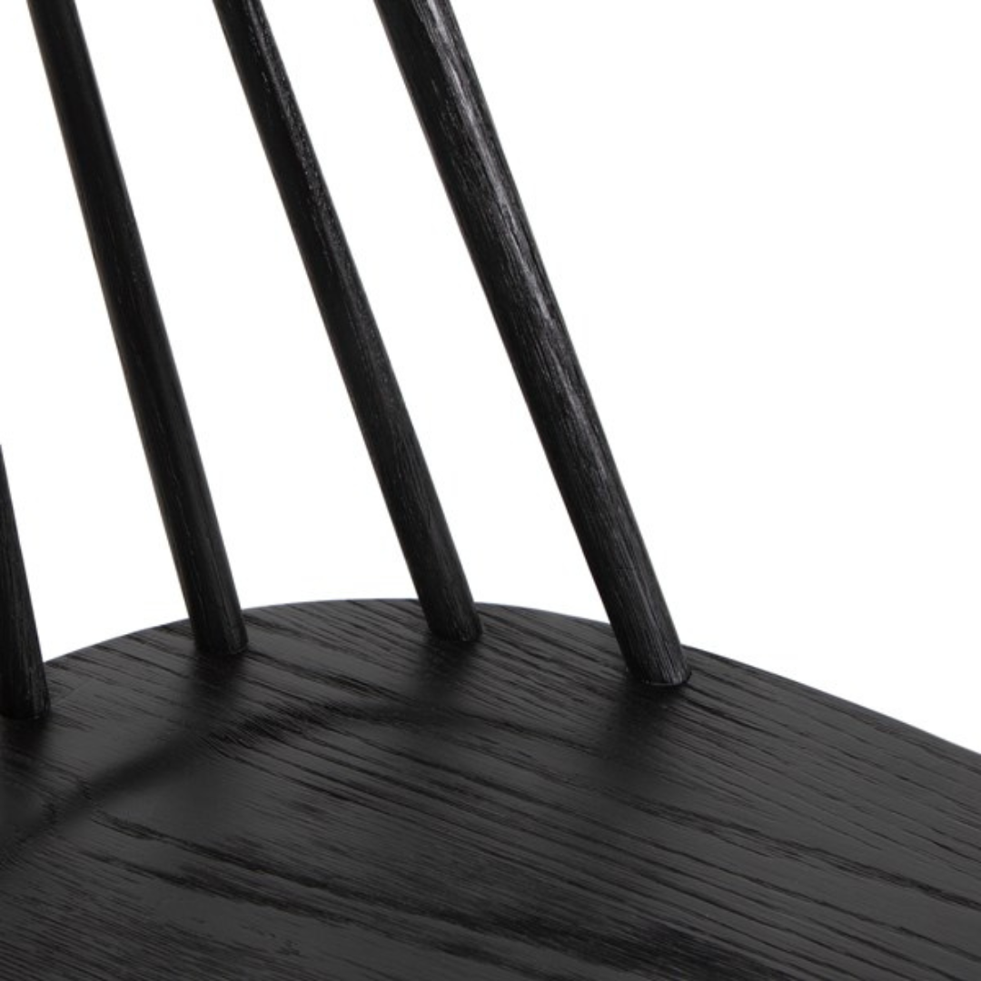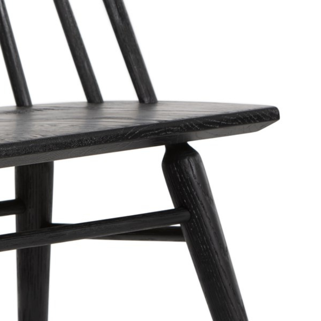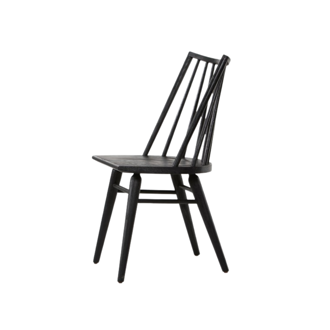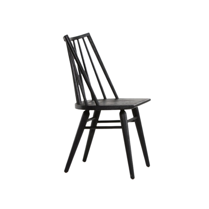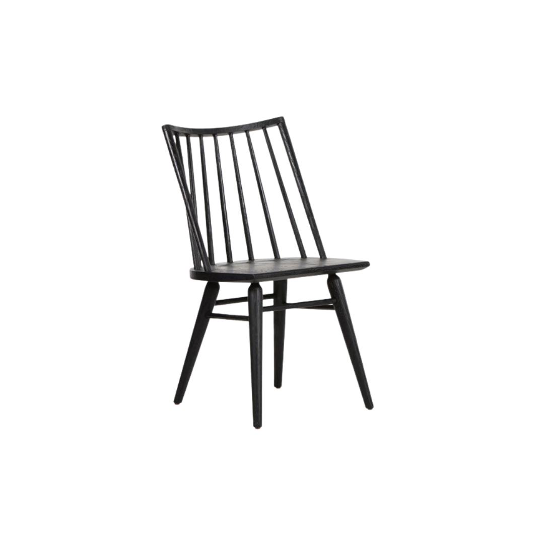 Try a cleaner, more modern take on the traditional Windsor. This tall beauty is wire-brushed to bring out the cathedral grain in the oak, and stained deep black for lovely contrast with more industrial decor.
