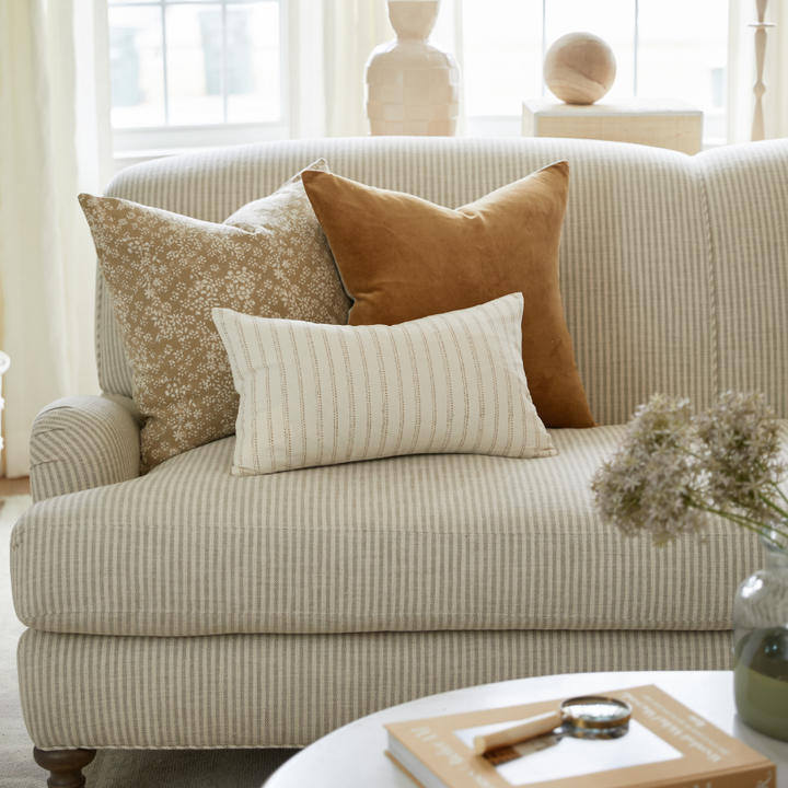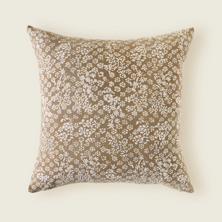 Elevate your home decor with our Lola Floral Pillow Cover. Made in the USA from 100% natural cotton, this fabric features a beautiful brown floral pattern on both sides, hand-block printed in India. With an invisible zipper and serged edges, this quality textile will be enjoyed for seasons to come.