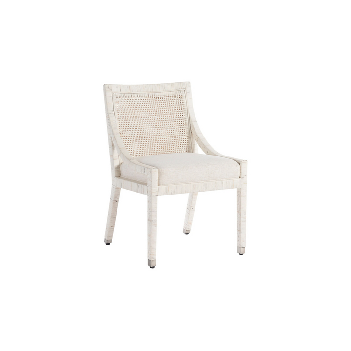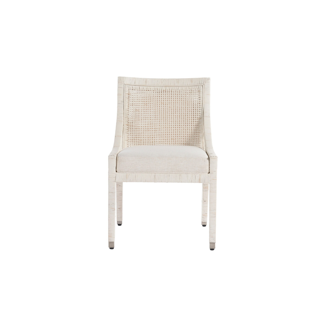 Elevate your dining experience with the Longboat Dining Chair. Its stain-resistant white fabric not only adds to the chic aesthetic but ensures easy maintenance, while the rattan chair-back adds a touch of natural texture. It would look perfect around your dining table or as an accent chair.