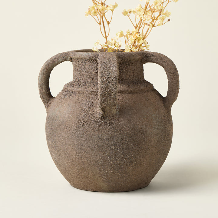 With its distinctive, oversized handles that elegantly frame the mouth, this vase adds both visual interest and a sense of quiet drama to your tabletop. Showcase it as a striking centerpiece on its own, or fill it with a favorite floral arrangement for an intentionally designed look.