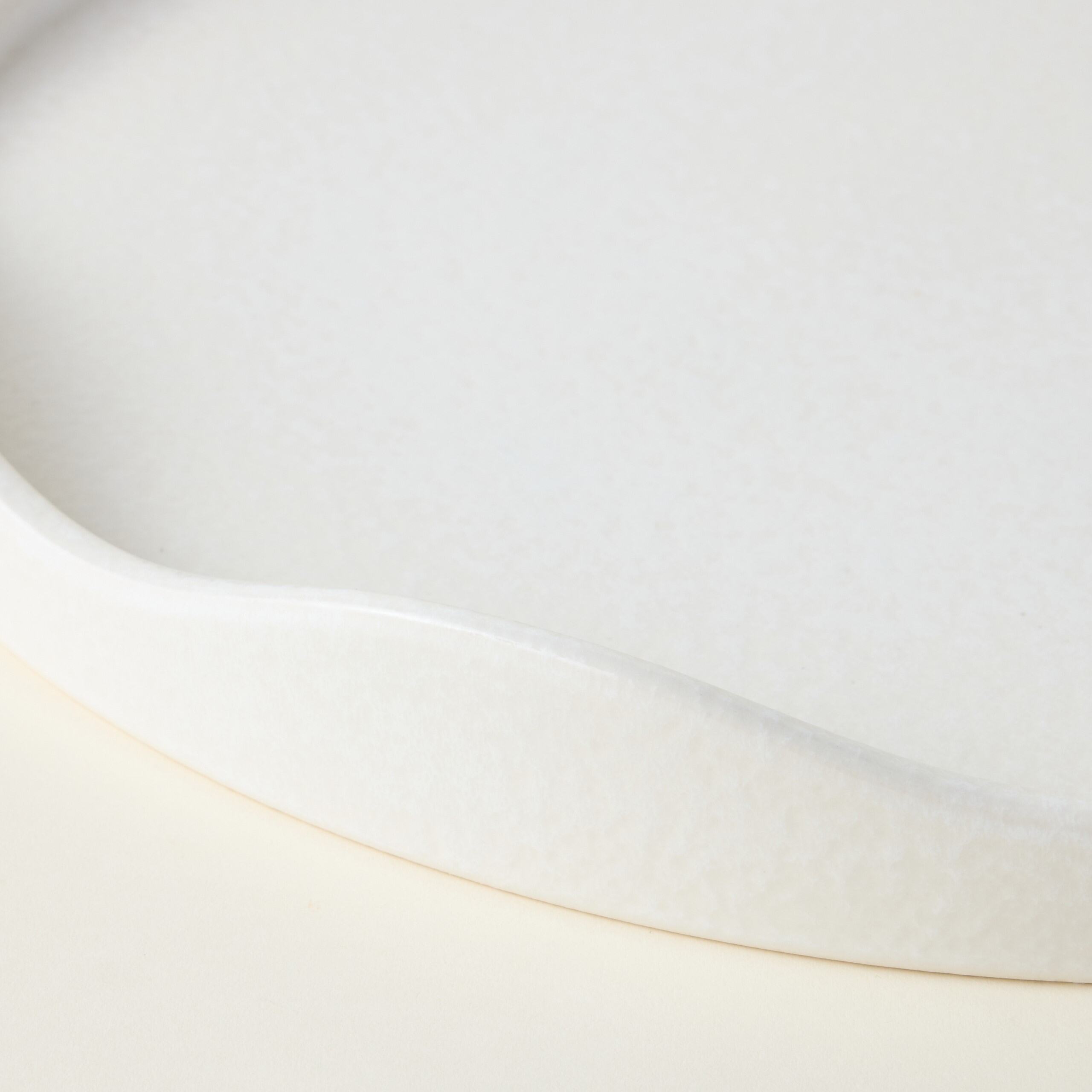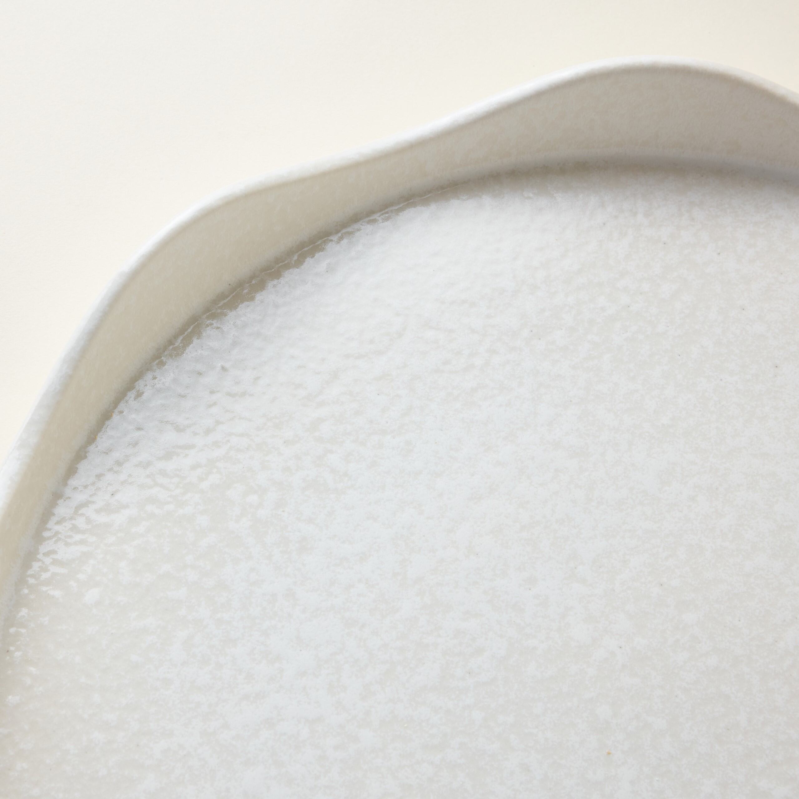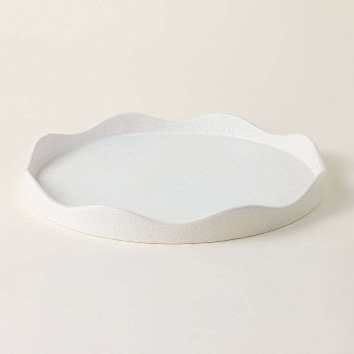 Expertly designed and crafted, the Loretta Tray is a playful and versatile design, perfect for serving while entertaining or used to display decorative accents. With a wide surface and food-safe finish, this ceramic tray features a unique squiggle rim and is finished in a white reactive glaze.