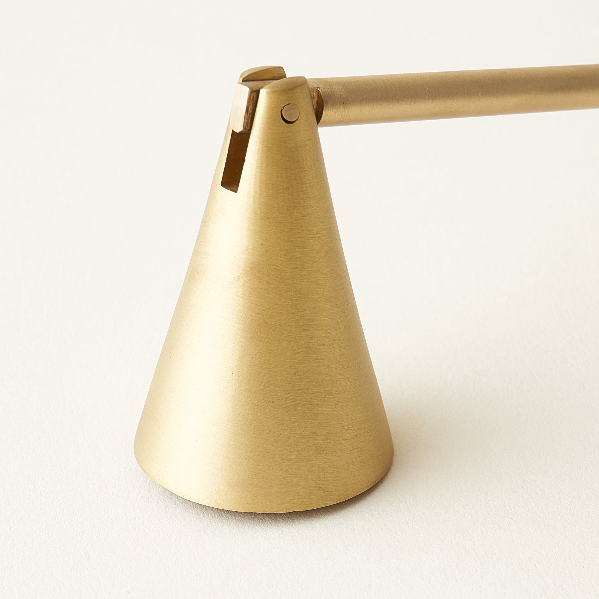 A thoughtful accent for your space, this Matte Gold Brass Snuffer is a curated essential that completes your daily ritual. Crafted from solid brass, its sleek, sculptural form and beautiful matte gold finish bring a touch of sophisticated style to your home.