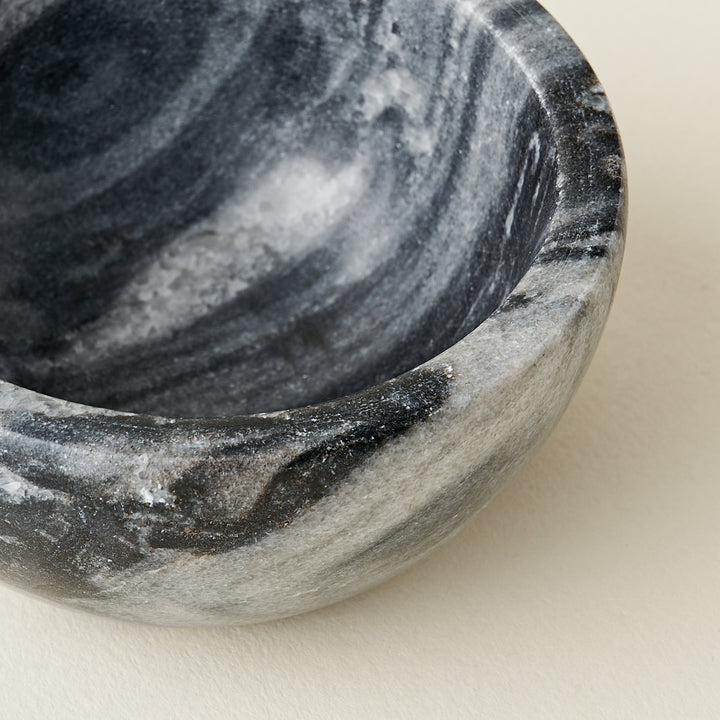 Bring sophistication and style to your kitchen with the Mila Marble Bowl. Crafted from solid black marble stone, this stylish accessory is the perfect addition to any kitchen. Enjoy spices, nuts, seeds and more with this pinch bowl-sized dish, or use in multiples to serve individual condiments and dips when entertaining. You'll love the natural variation of the black marble, creating a visually dynamic texture.