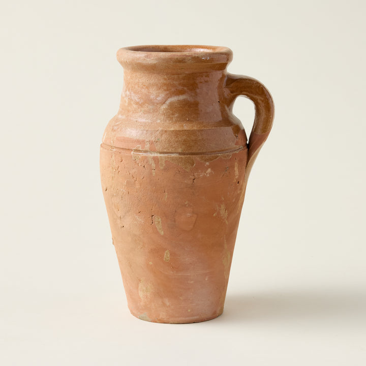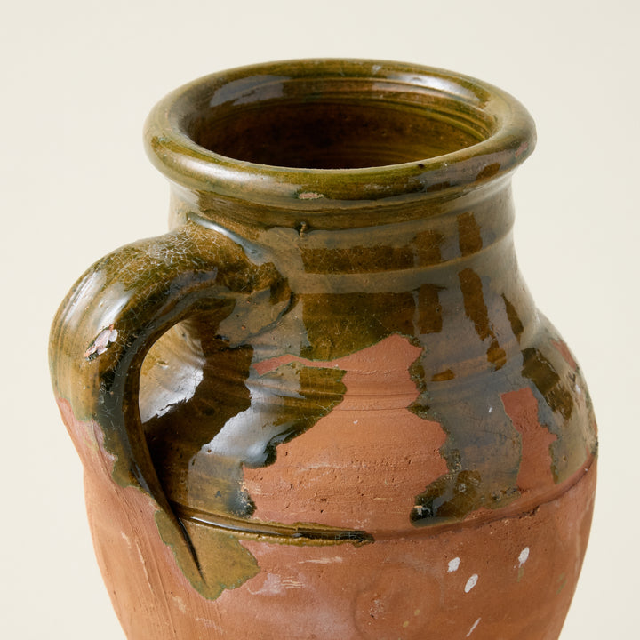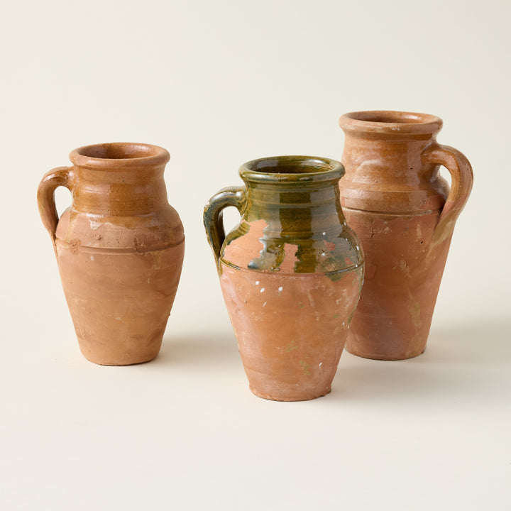A truly one-of-a-kind piece, this Mini Olive Jar is an authentic vintage vessel with a rich, storied past. Each jar was globally-sourced from Europe, where it was once used to cure and store olives and olive oil. Its timeless character is reflected in the unique marks of age and use, making it a distinctive addition to your curated collection. Add a touch of Mediterranean heritage to your home with these beautiful and thoughtfully made pieces.