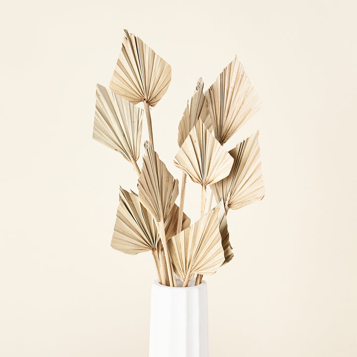 Dried botanicals are an easy way to add character and detail to a room decor. Simply place this mini palm spear bundle in a vase to add vertical dimension. You can also use one or 2 stems in a small bud vase.