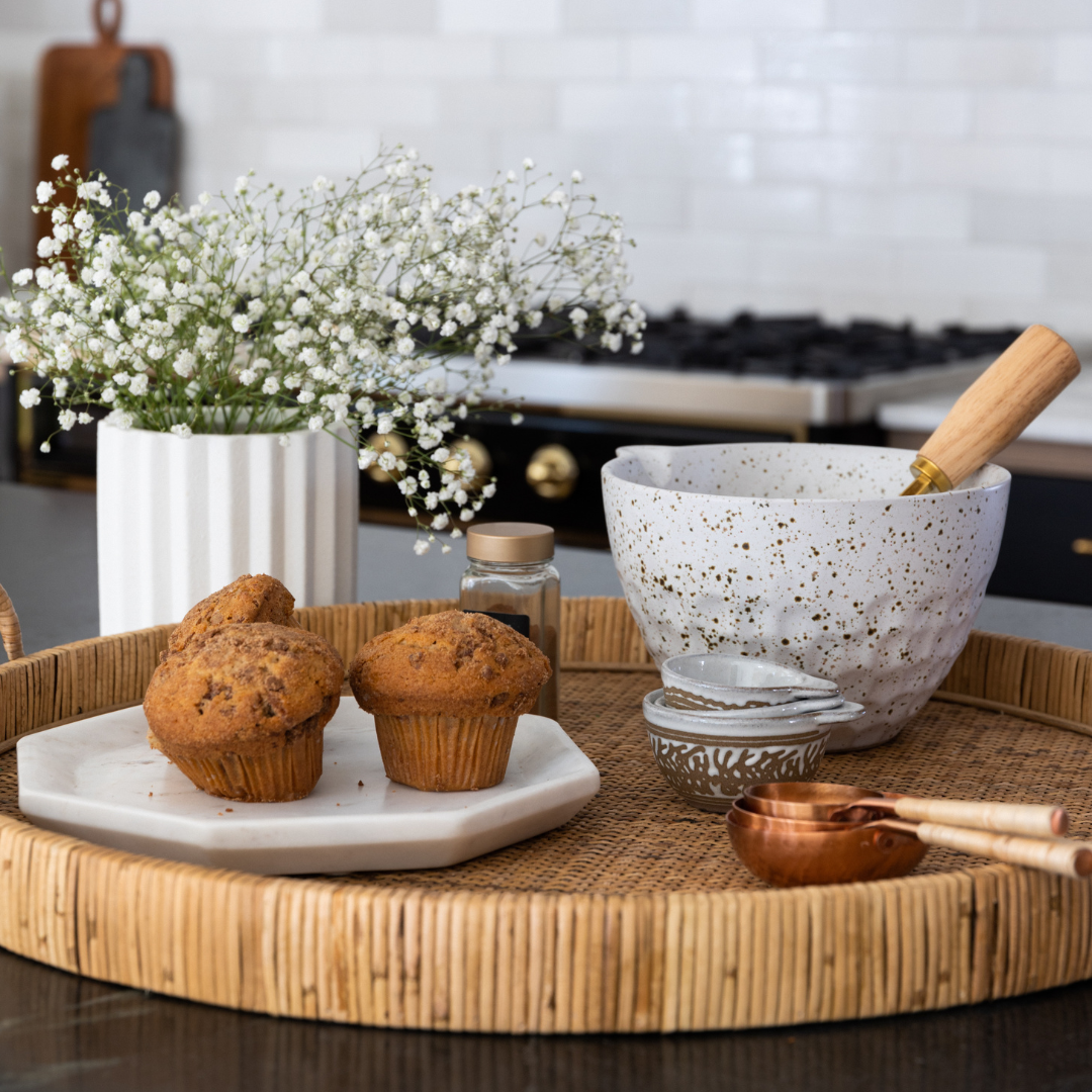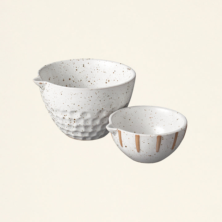 As versatile and useful, as it is beautiful, the Mitzi Bowl brings a confluence style and function to your table. A clean silhouette, a subtle specked finish, and a perfectly-positioned spout make an easy way to infuse your kitchen with artisanal style.