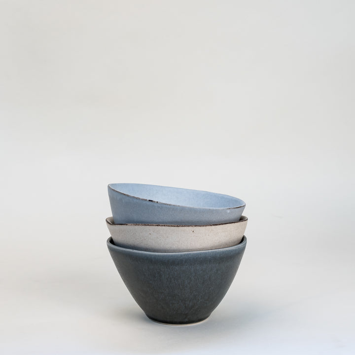 Beautiful stoneware bowl with a matte reactive glaze. No two pieces will be exactly the same. Hand made in Portugal. Comes in three different colors.