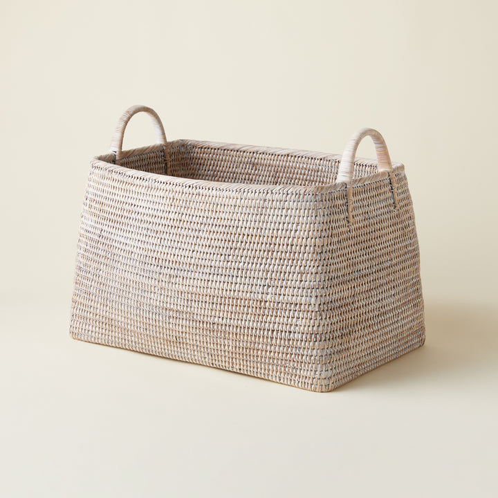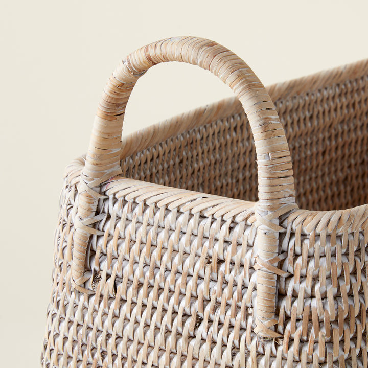 A beautiful way to add timeless texture to your home. This Natural Rattan Basket features a tight weave and a beautiful whitewash finish, a true testament to the craftsmanship passed down from generation to generation. Functional and stylish, this basket adds visual interest wherever it's placed.