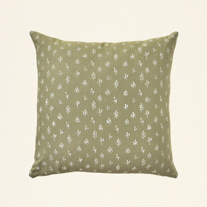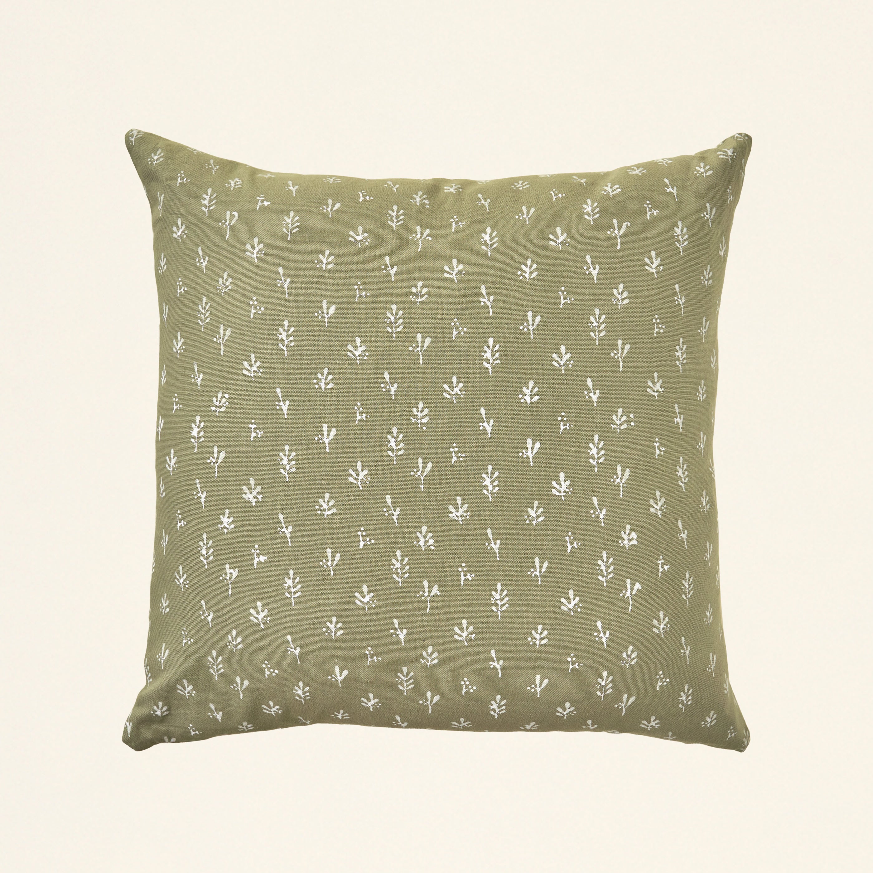 Handwoven by an artisan family in a remote village in India. Every yard takes 2 days to finish, made end-to-end in a fair-trade environment.Floral 1 (20x20) Olive-Ivory