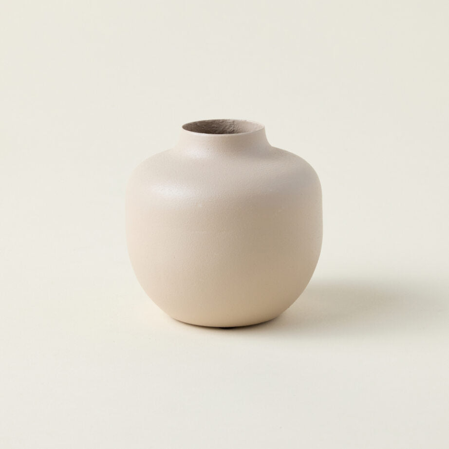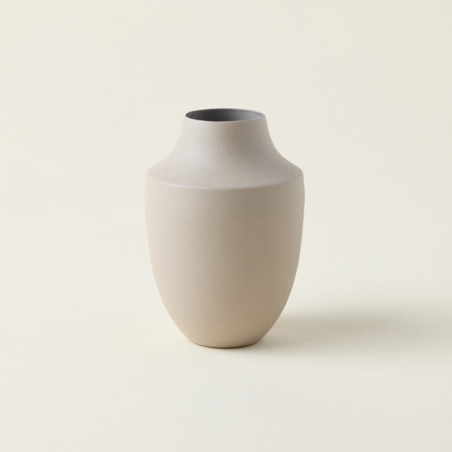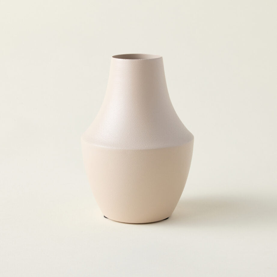 Crafted of thin metal, the Page Budvase effortlessly complements any design style with its neutral color and matte finish. Its versatile design, with a curvy shape and tapered opening, allows for use as a standalone piece or styled with faux botanicals.