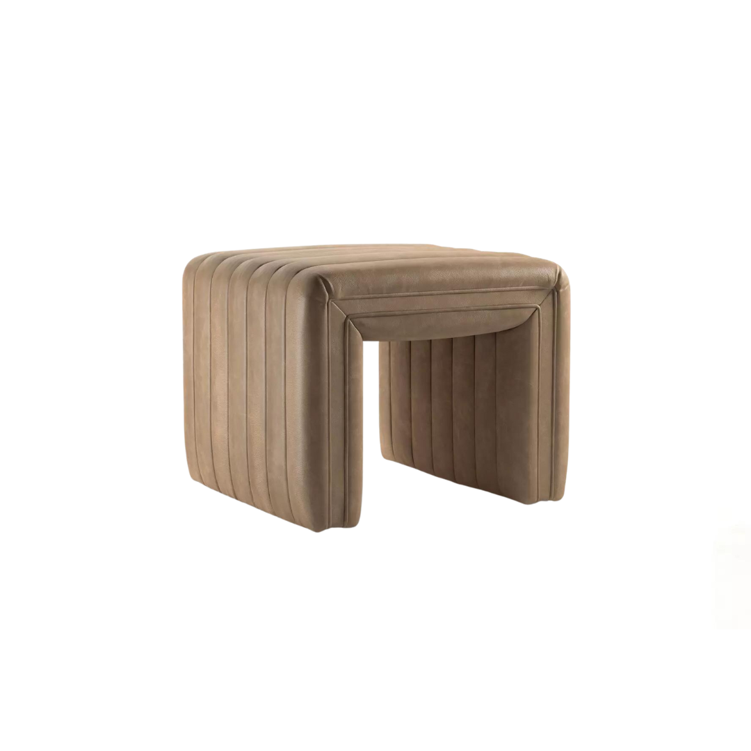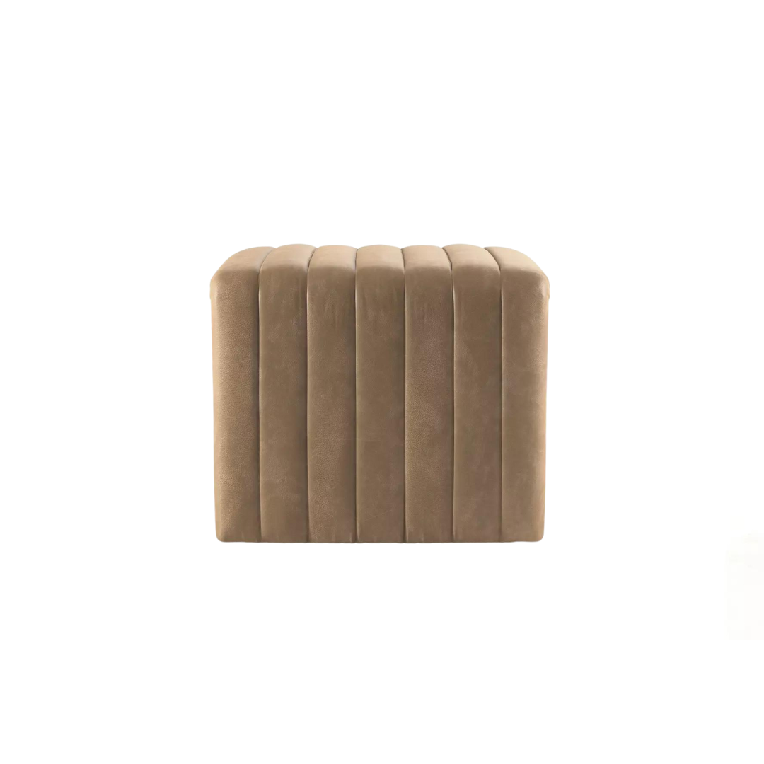 Add style and functionality to your living space with the Palmer Ottoman. Constructed with plush top-grain leather in a drift colorway and featuring a channeled design, this piece provides both extra seating and a versatile surface. The pronounced grain adds texture and sophistication to any room.
