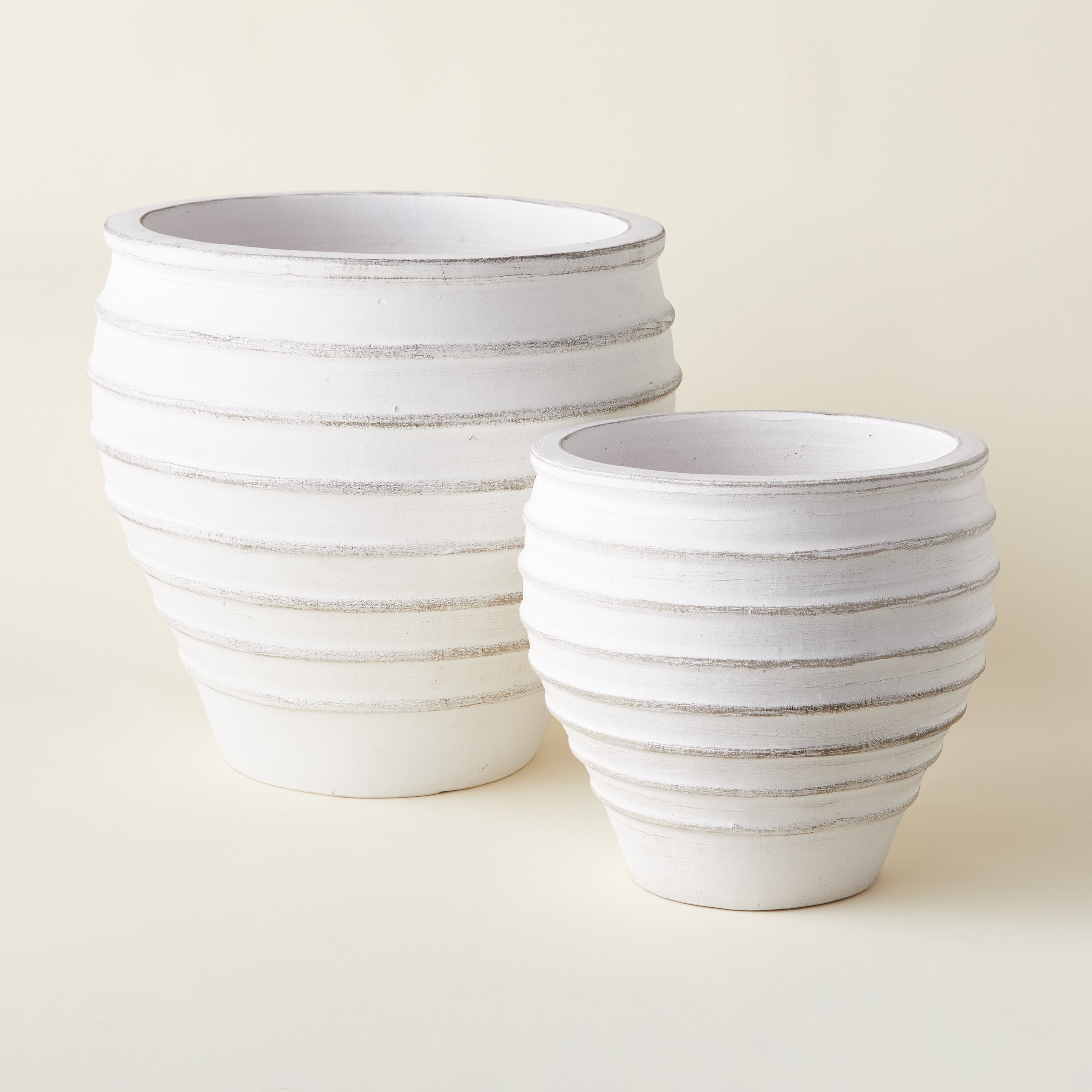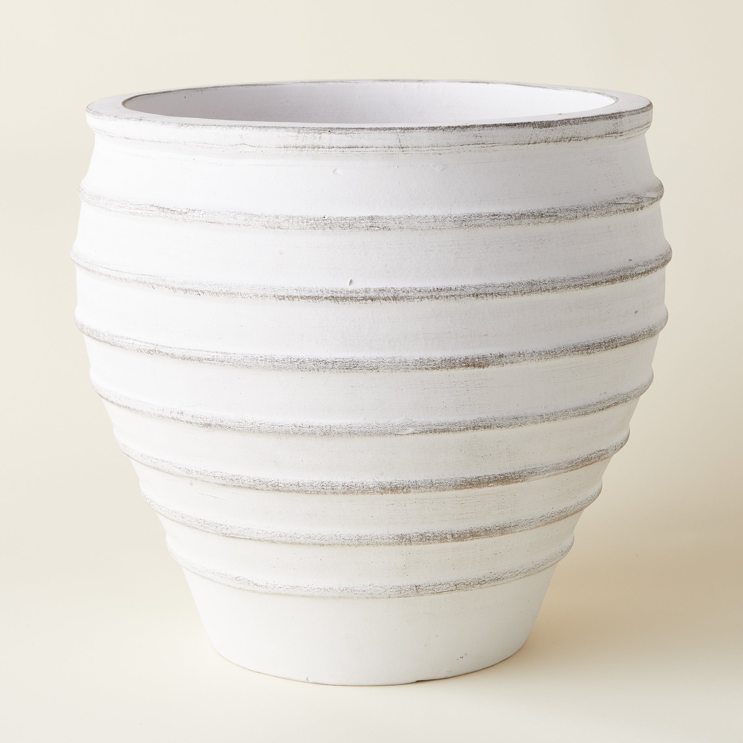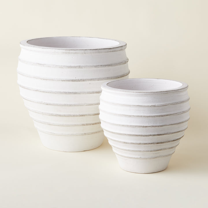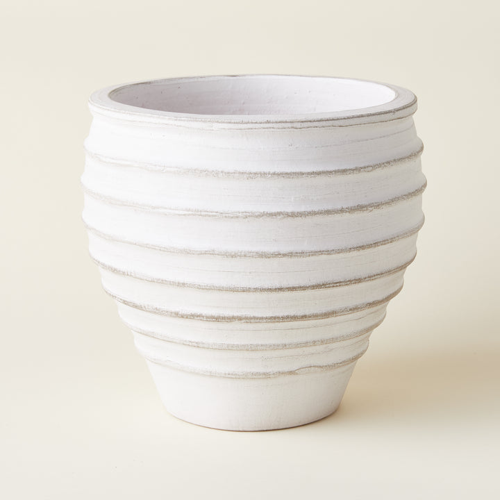 Elevate your outdoor space with our Penelope Planter! Crafted from durable ceramic with a stunning whitewash finish, this planter features dimensional horizontal lines for added texture. Bring charm to your garden or patio with this stylish addition.