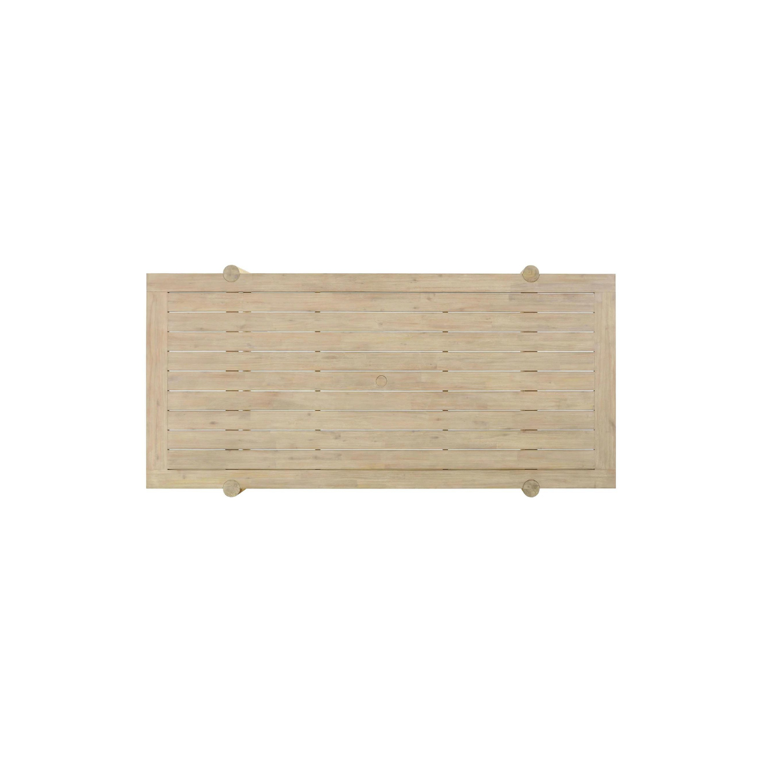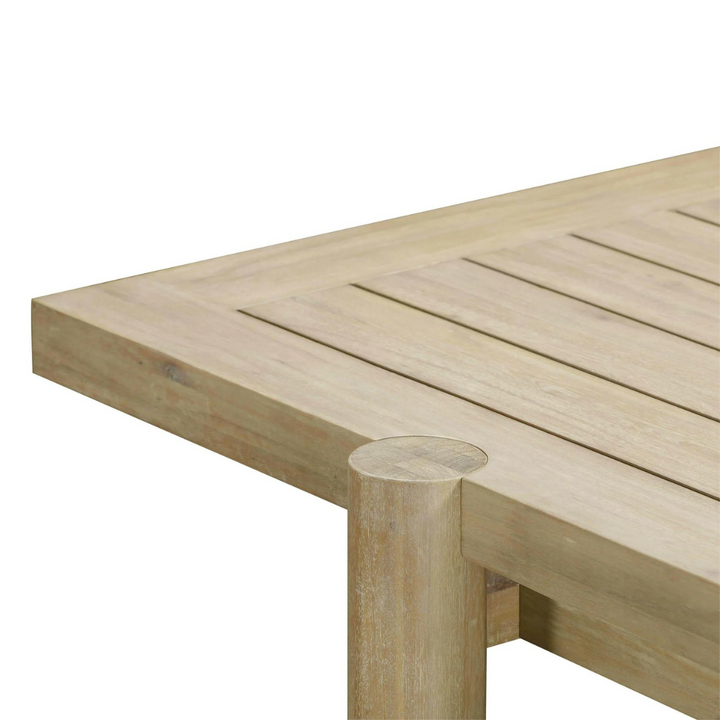 Expertly crafted with durable solid Eucalyptus wood in a light teak finish, the Penny Outdoor Dining Table is a timeless and functional addition to any outdoor space. Featuring a convenient umbrella hole with a wooden cap, this table allows for versatile use with or without an umbrella. Pair with the Greta Outdoor Dining Chair to complete the look and cover or store indoors during inclement weather or when not in use.
