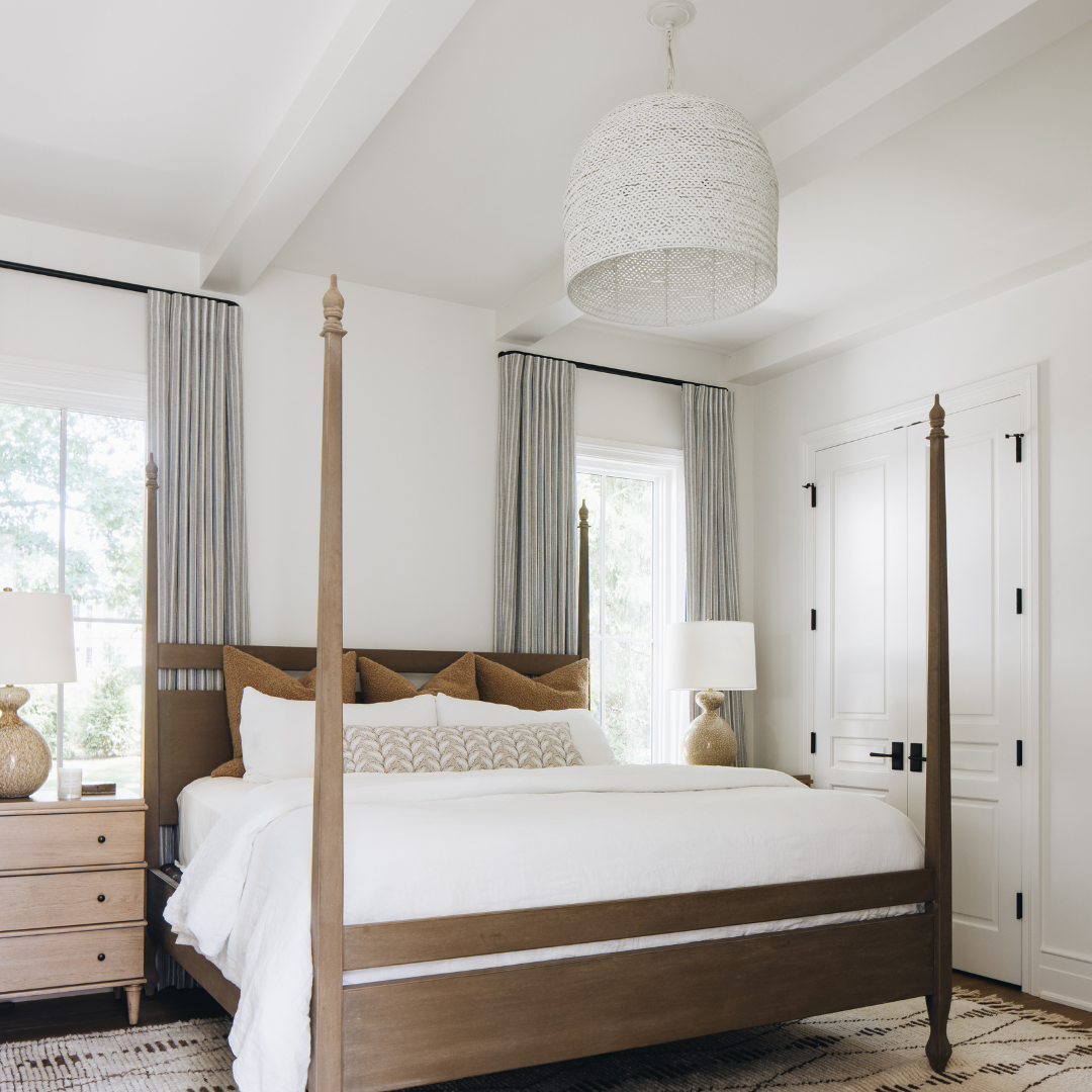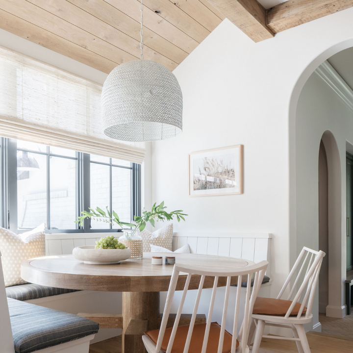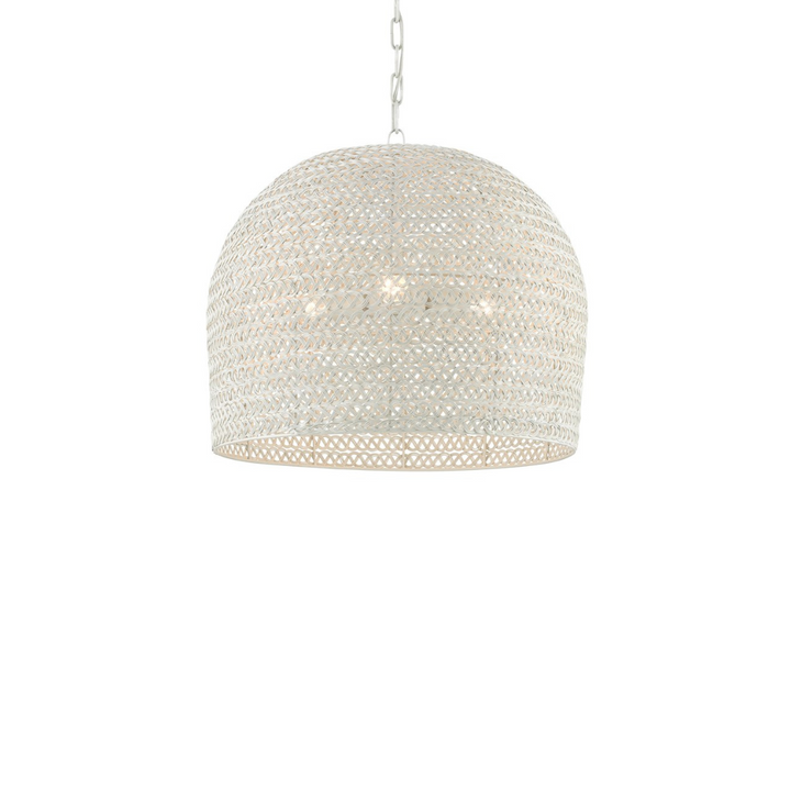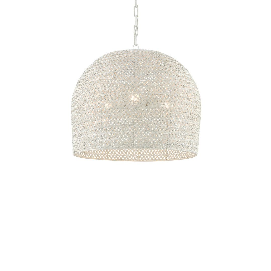 The Perry Chandelier may appear to be woven from a natural plant material, but it is made of iron in a white finish to make it one of our offerings that illustrates the skills our craftspeople bring to their work. When the white chandelier is illuminated, textural patterns will enliven surrounding surfaces.