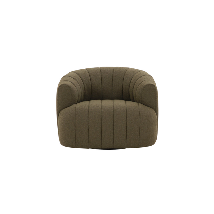 Experience the Perry Swivel Chair, expertly designed to combine elegant curves and rich textures with lasting durability. Crafted with sustainability in mind in a Fiqa Boucle Olive colorway, this chair features a smooth 360-degree swivel mechanism, making it a versatile addition to any space.