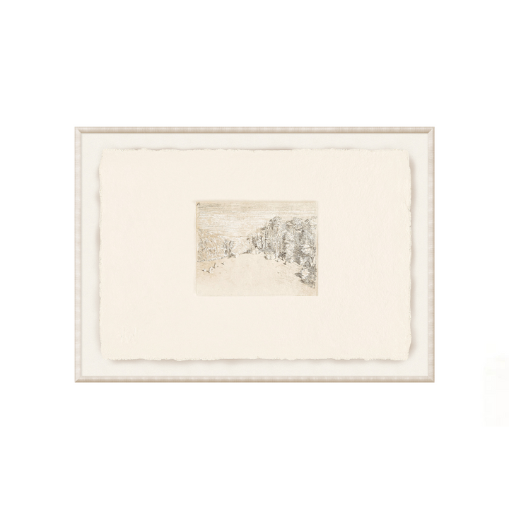 Immerse yourself in the serene beauty of nature with Petite View II. The delicate details and soft color palette of this petite drawing will transport you to a peaceful landscape. The intricate white highlights add depth and dimension to this serene piece.