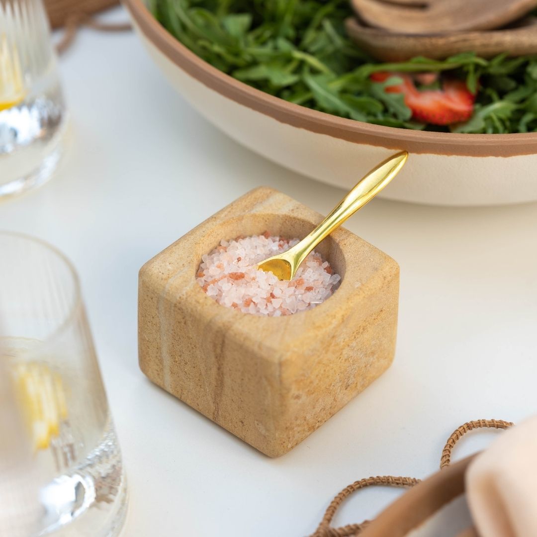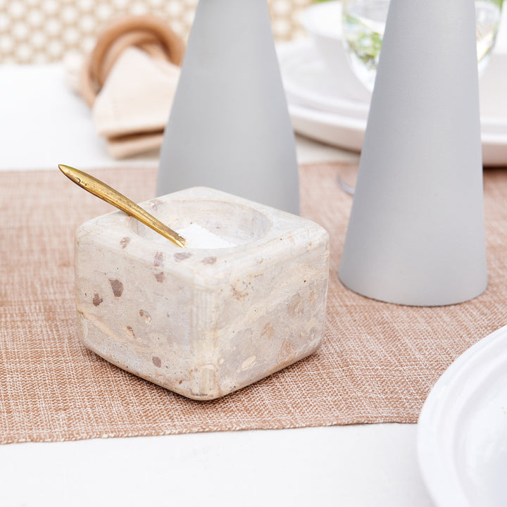 Bring a touch of luxury to dining with this elegant marble Pinch Pot, crafted to perfection and beautifully complemented by a solid brass spoon. It's the perfect accompaniment to any table!
